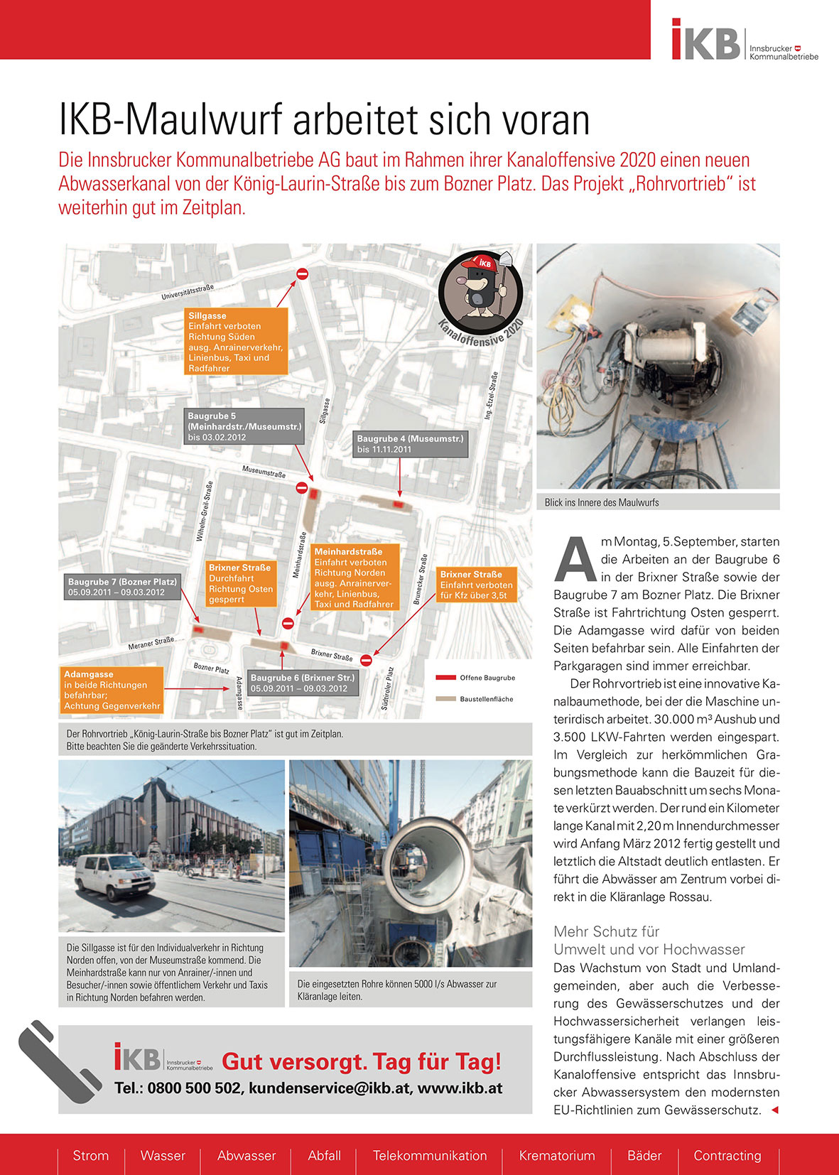 Die Innsbrucker Kommunalbetriebe AG baut im Rahmen ihrer Kanaloffensive 2020 einen neuen