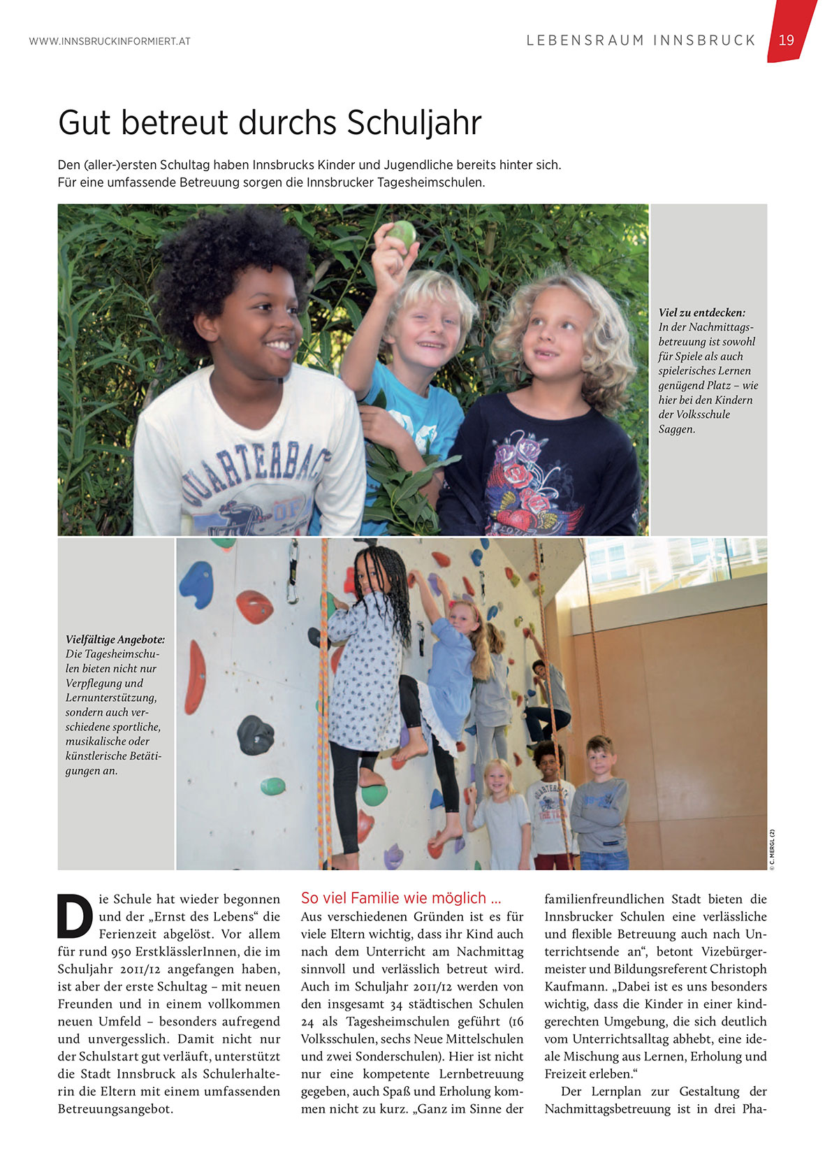 die Stadt Innsbruck als Schulerhalterin die Eltern mit einem umfassenden