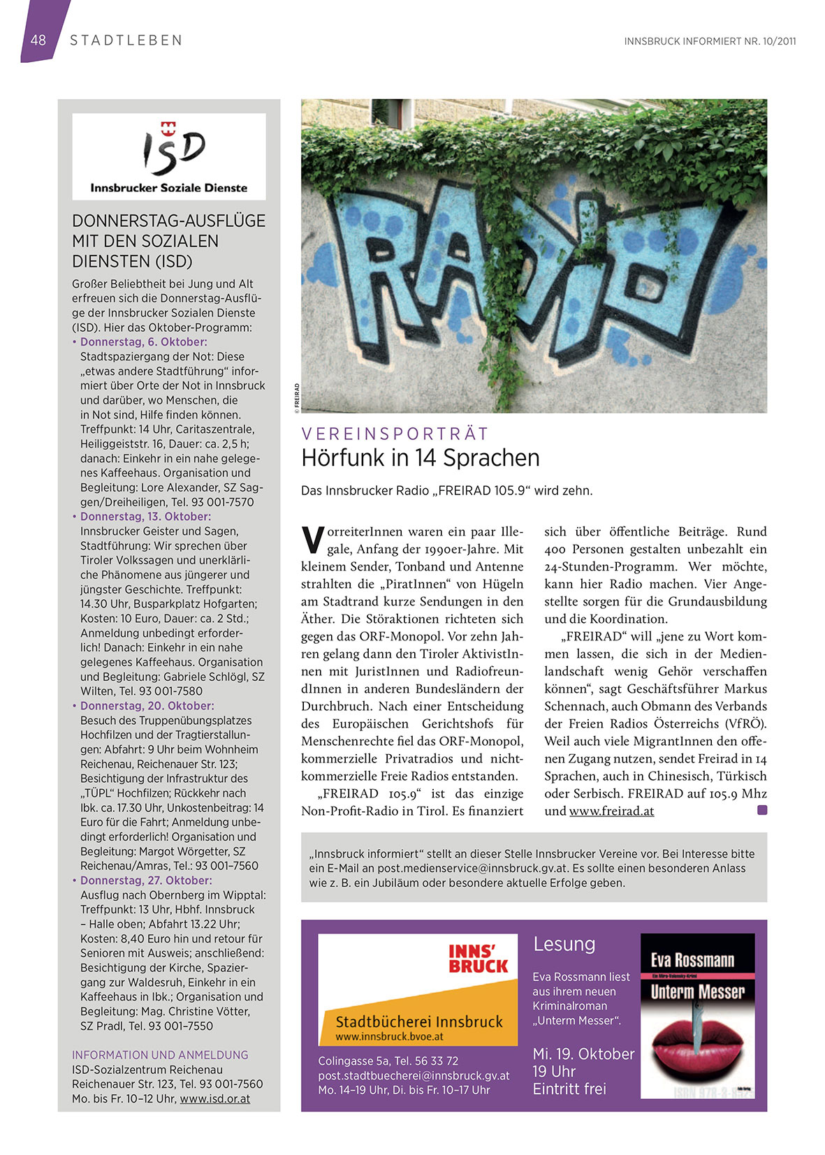 das Innsbrucker radio „FreIrad 105.9“ wird zehn.