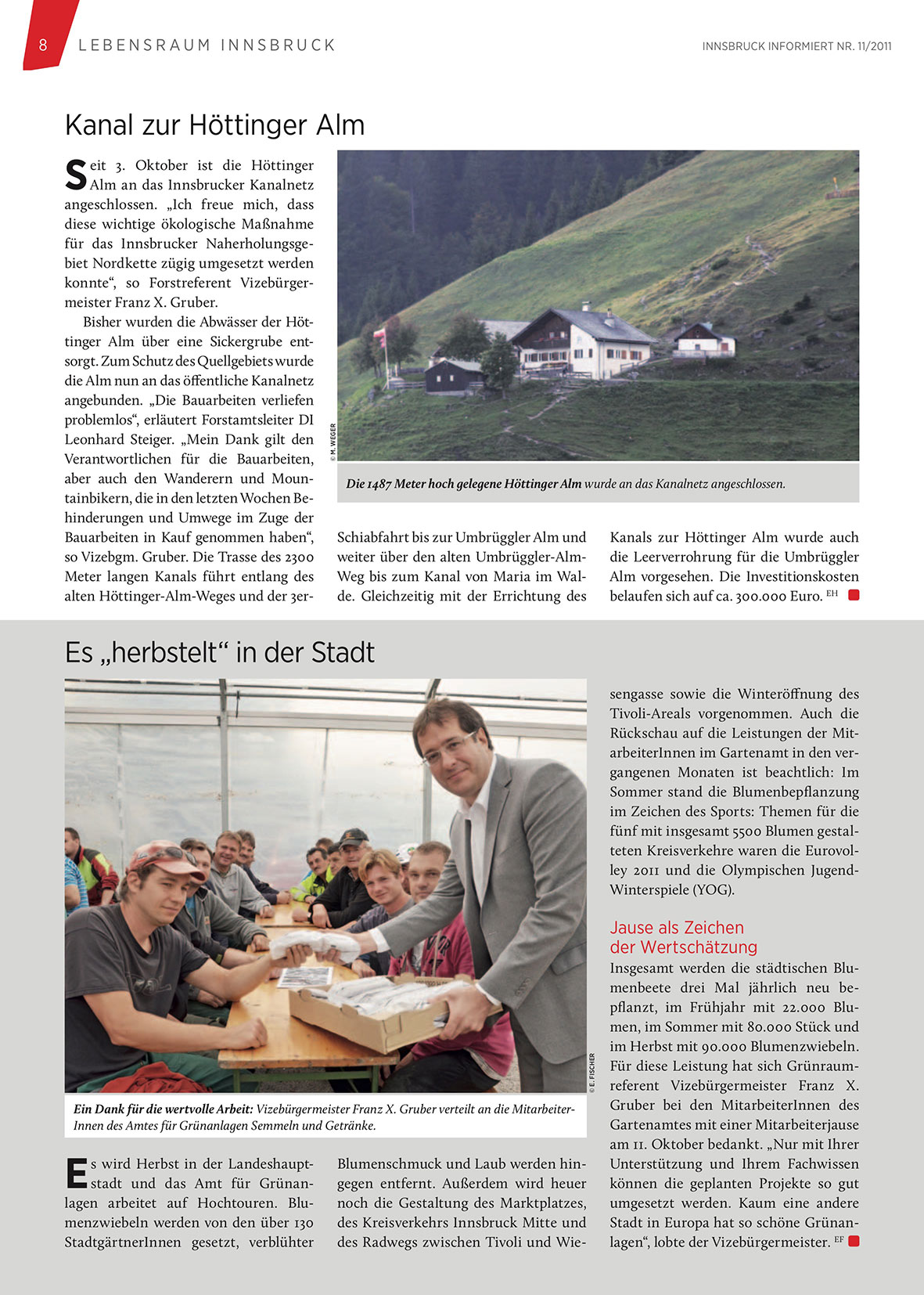 Die 1487 Meter hoch gelegene Höttinger Alm wurde an das Kanalnetz angeschlossen.