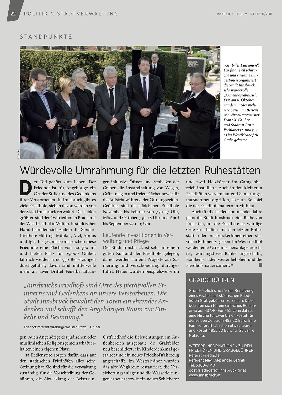 „Innsbrucks Friedhöfe sind Orte des pietätvollen Erinnerns und Gedenkens an unsere Verstorbenen. Die