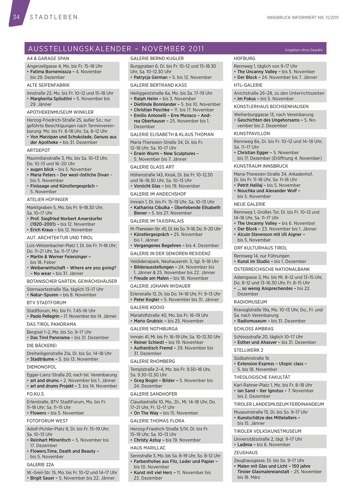 Aus s tellu n g s k alen d er – n ovem b er 2011