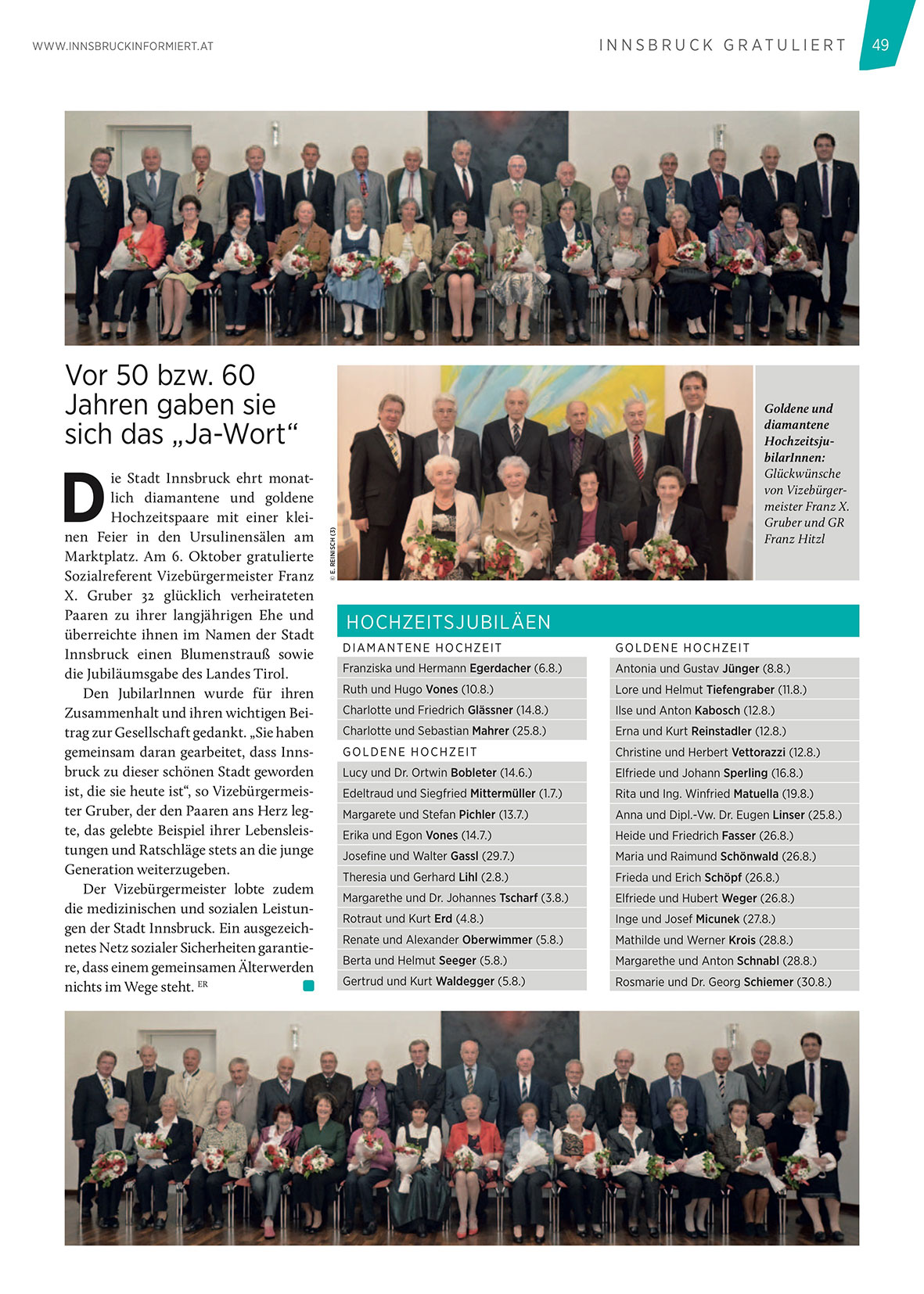 ie Stadt Innsbruck ehrt monatlich diamantene und goldene