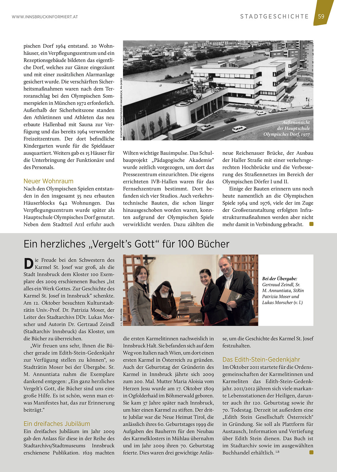 Stadt Innsbruck dem Kloster 100 Exemplare des 2009 erschienenen Buches „Ist