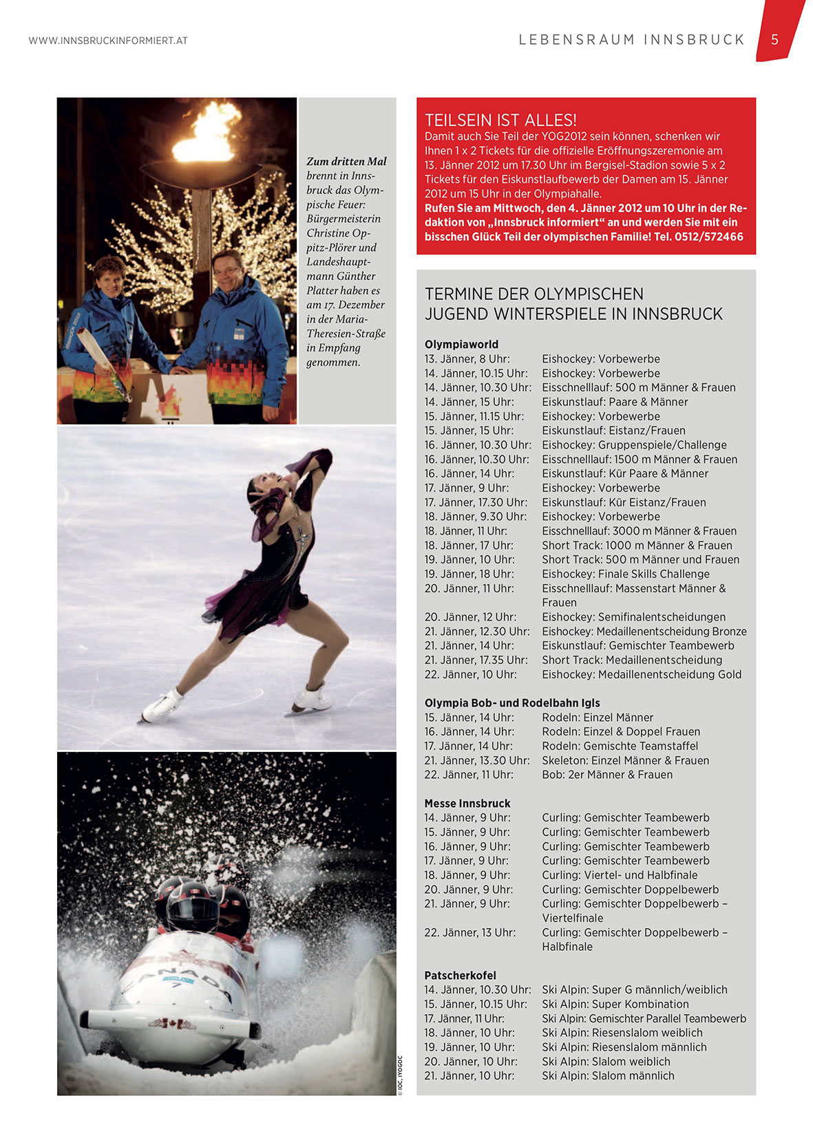 Rufen Sie am Mittwoch, den 4. Jänner 2012 um 10 Uhr in der Redaktion von „Innsbruck informiert“ an und werden Sie mit ein