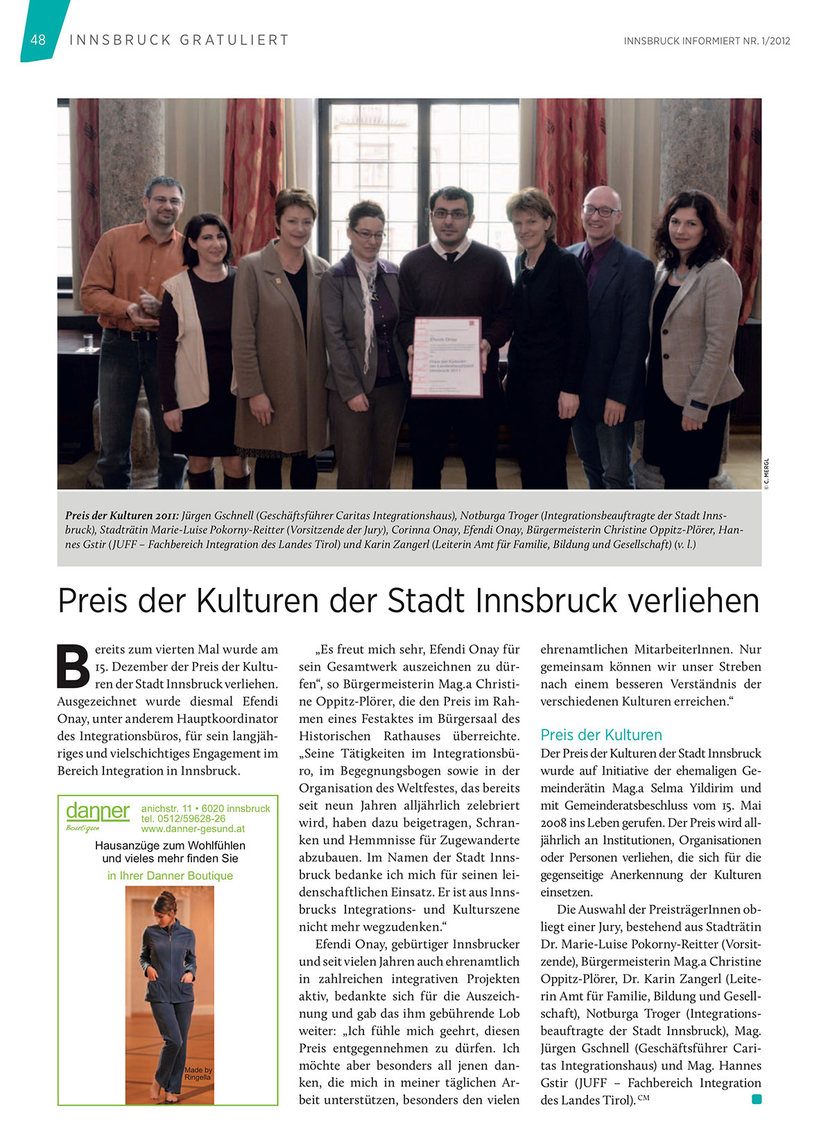 abzubauen. Im Namen der Stadt Innsbruck bedanke ich mich für seinen leidenschaftlichen Einsatz. Er ist aus Innsbrucks Integrations- und Kulturszene