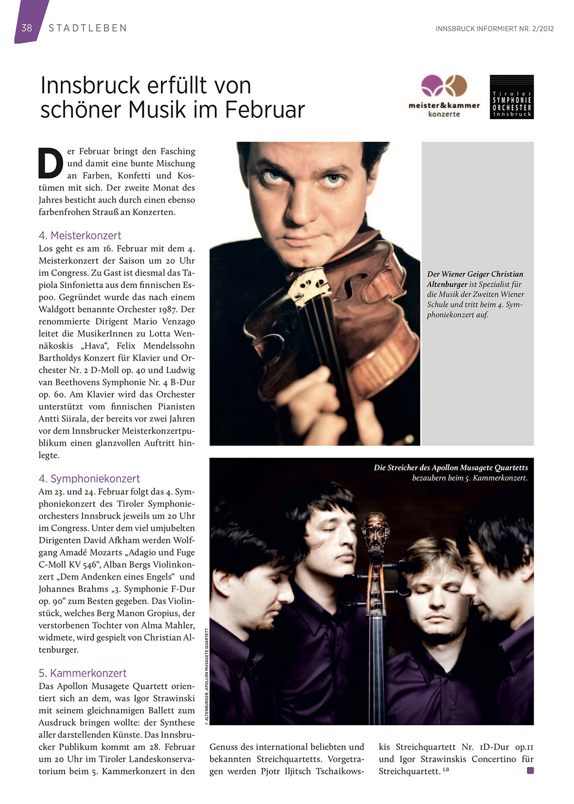 Schule und tritt beim 4. Symphoniekonzert auf.