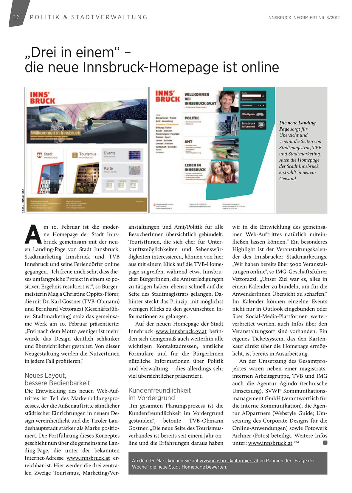 m 10. Februar ist die moderne Homepage der Stadt Innsbruck gemeinsam mit der neuen Landing-Page von Stadt Innsbruck,