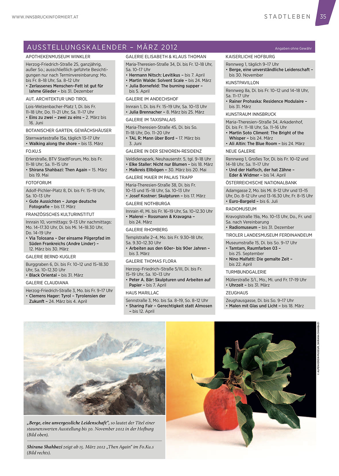 Innrain 41, Mi. bis Fr. 16–19 Uhr, Sa. 10–12.30 Uhr