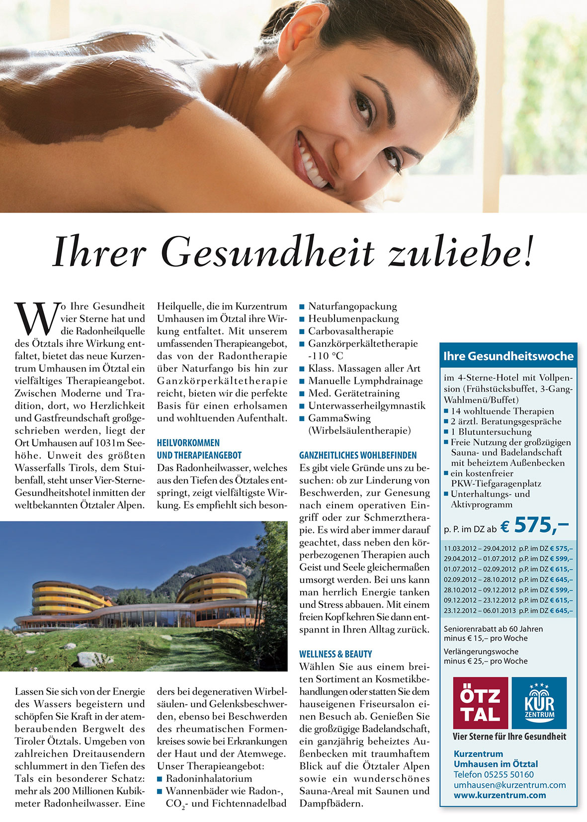 aus den Tiefen des Ötztales entspringt, zeigt vielfältigste Wirkung. Es empfiehlt sich beson-