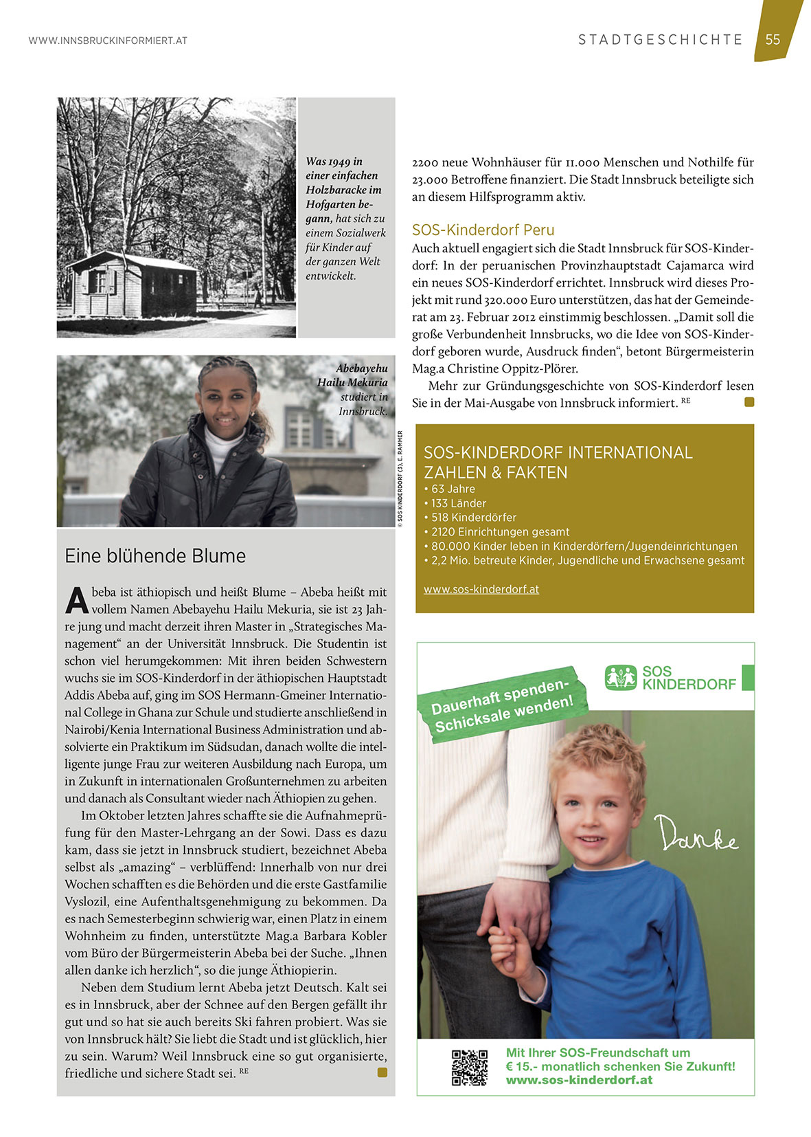 Auch aktuell engagiert sich die Stadt Innsbruck für SOS-Kinderdorf: In der peruanischen Provinzhauptstadt Cajamarca wird