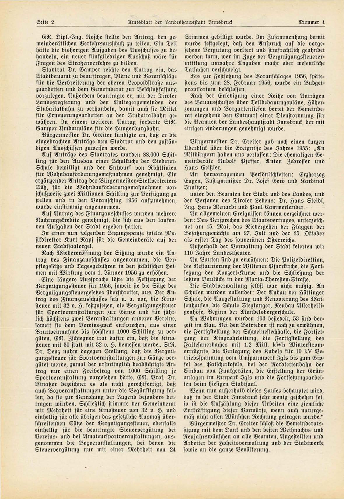 Bis zur Festsetzung des Voranschlages !!!.",!», spätestens bis zum 28. Februar 1956, wurde ein Budgetprovisorium beschlossen.