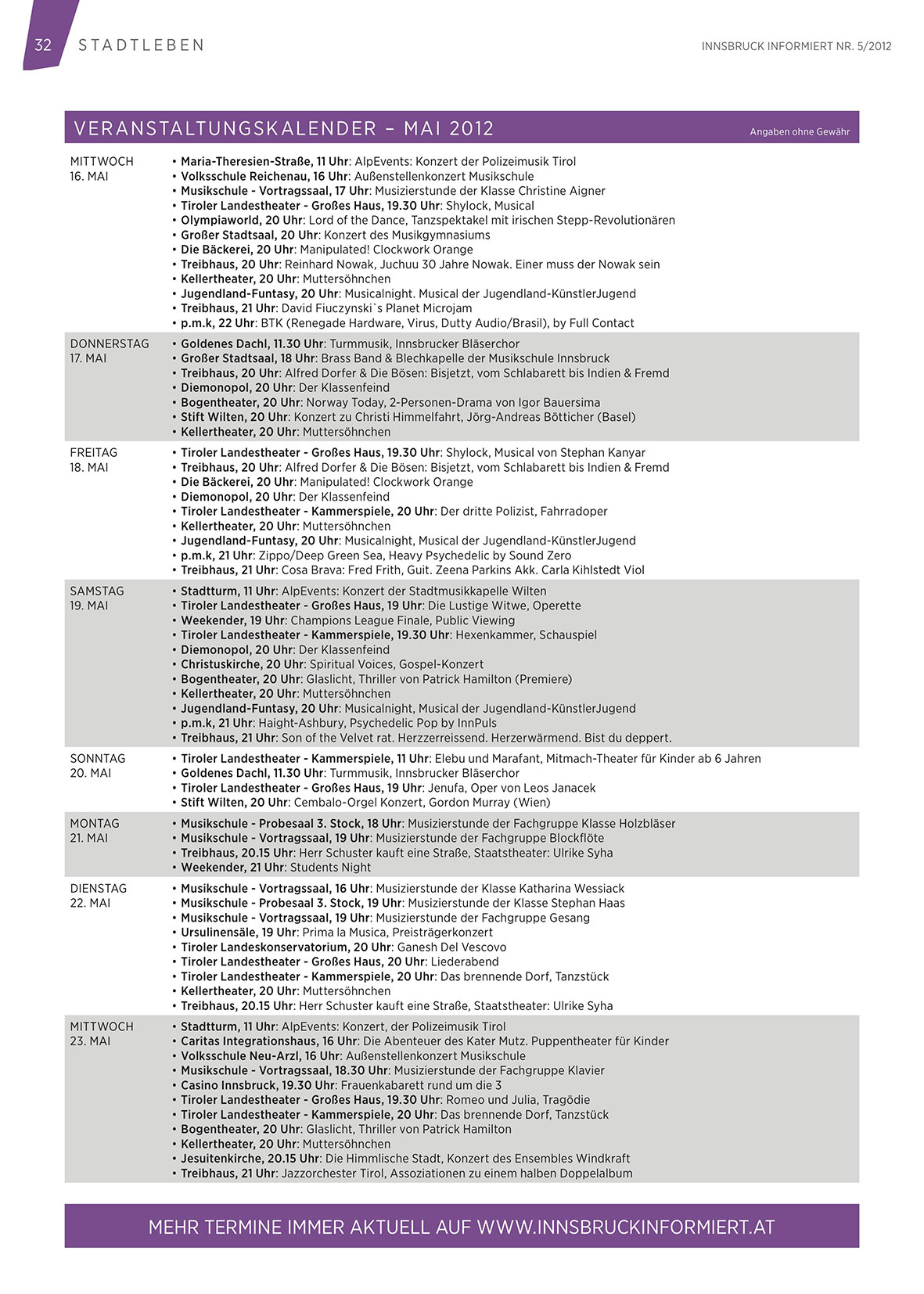 Mehr termine immer aktuell auf www.innsbruckinformiert.at