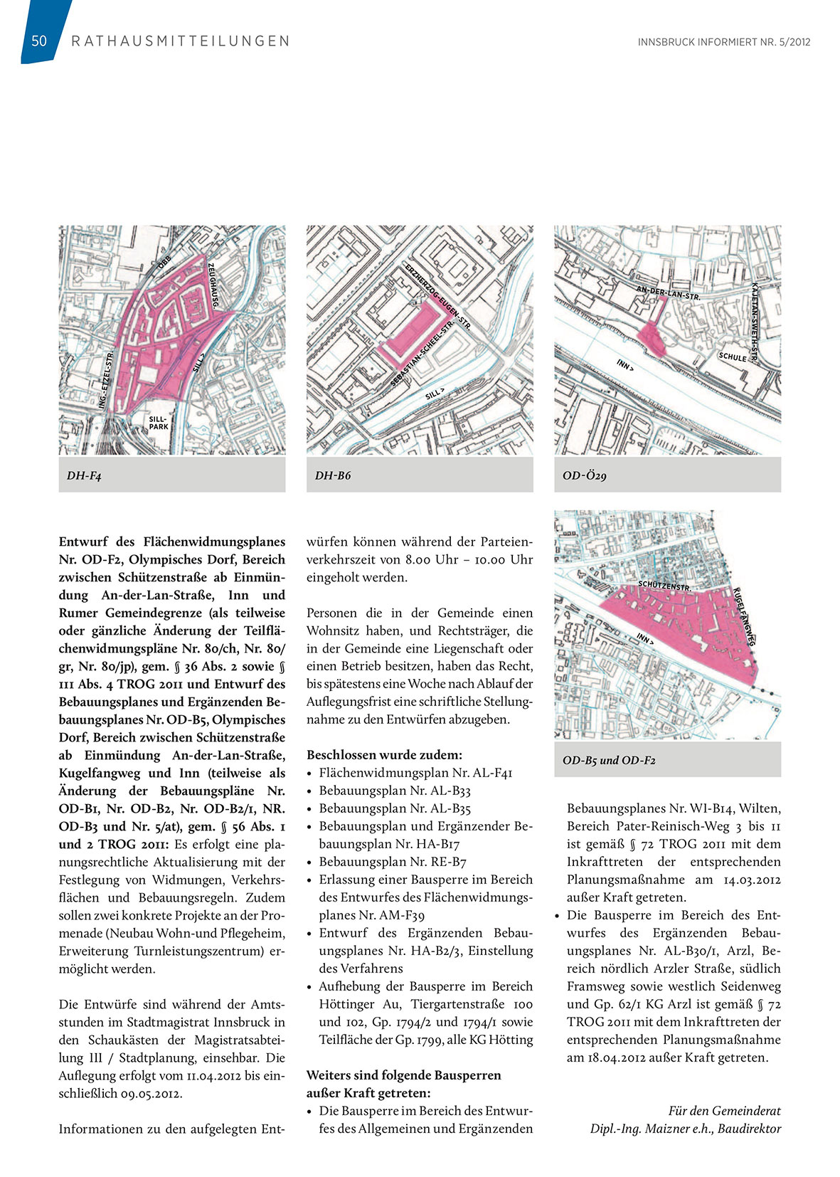 Die Entwürfe sind während der Amtsstunden im Stadtmagistrat Innsbruck in