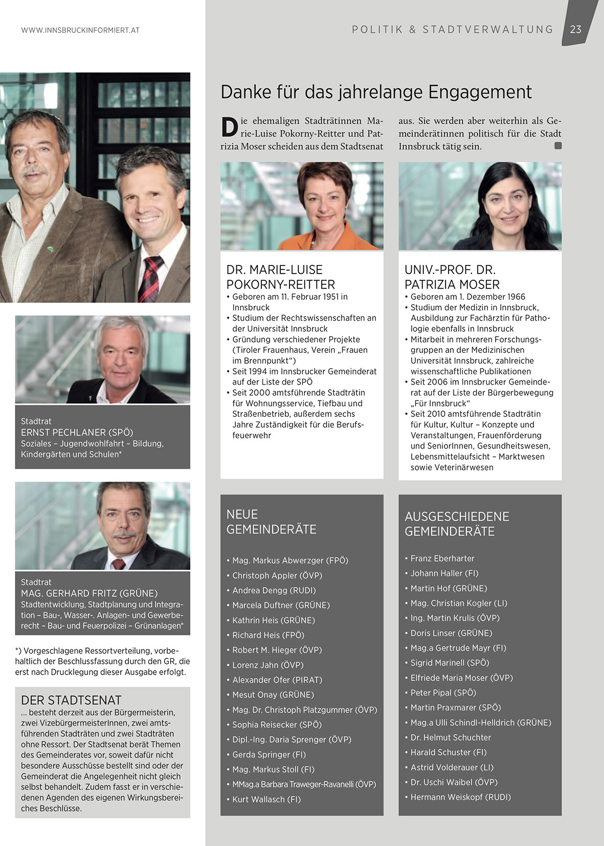 • Seit 2006 im Innsbrucker Gemeinderat auf der Liste der Bürgerbewegung