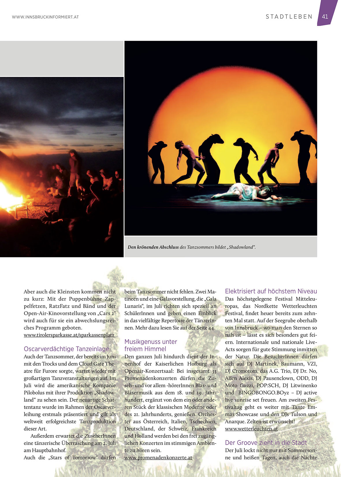 in das vielfältige Repertoire der TänzerInnen. Mehr dazu lesen Sie auf der Seite 44.