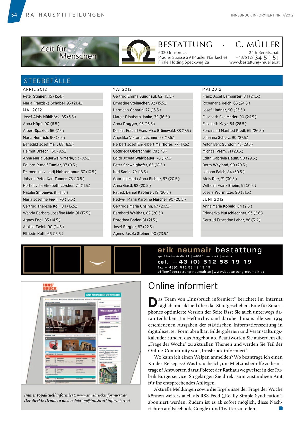 iNNSBRuCK iNFORMiERT NR. 7/2012