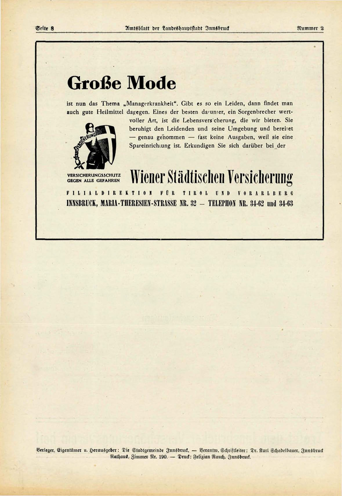 Verleger, Eigentllüler «.Herausgeber: Tie Stadtgemeinde Innsbruck. — Veraulw. Schriftleiter: Tr. Karl Lchadrll"auer, I