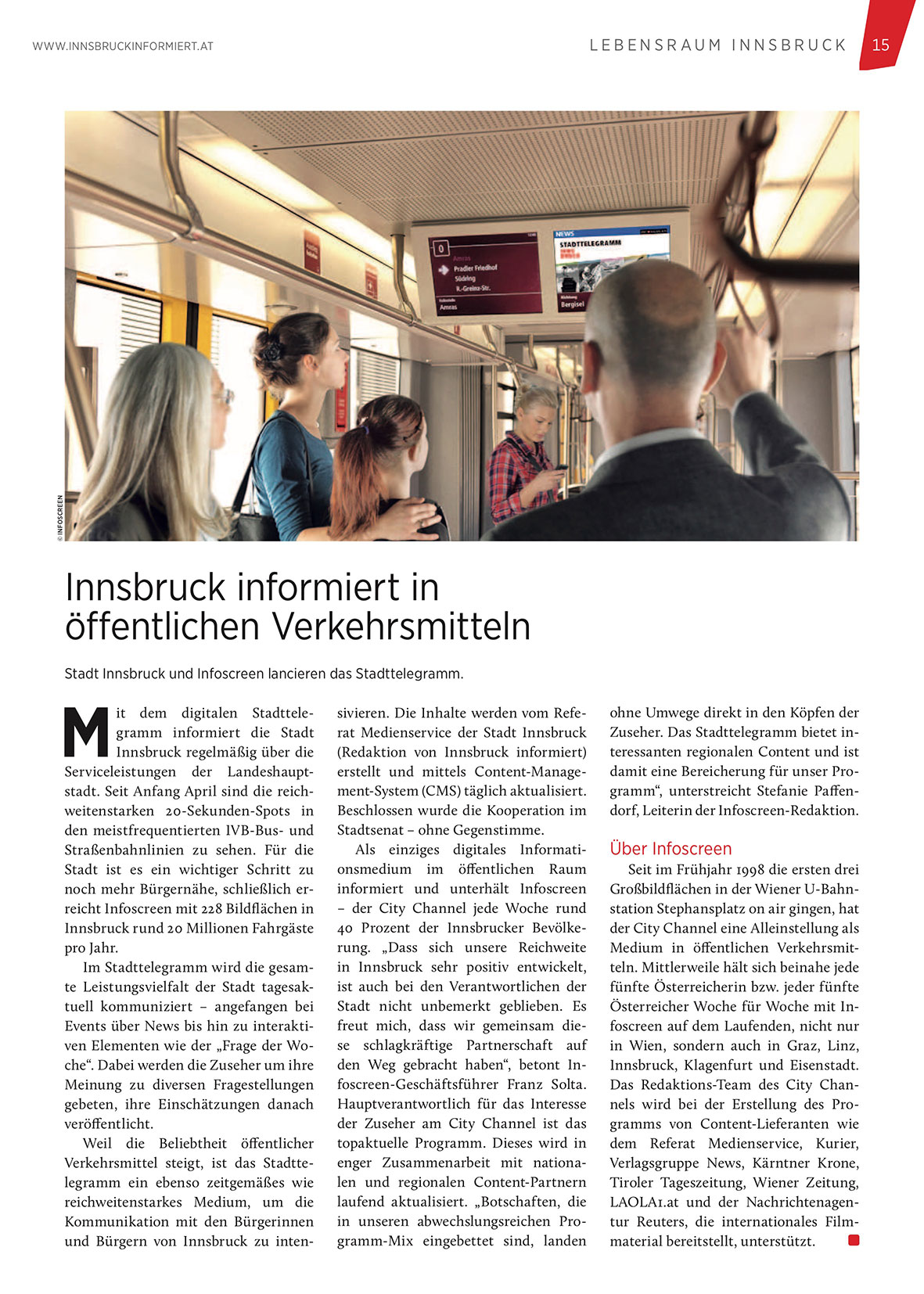 Stadt Innsbruck und Infoscreen lancieren das Stadttelegramm.