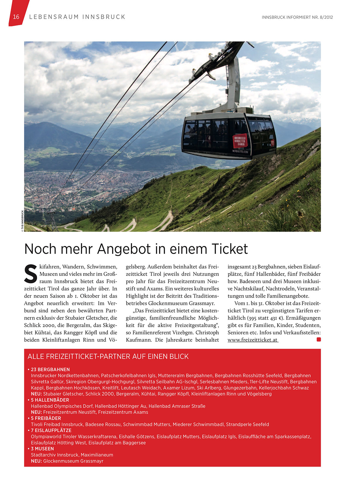 Museen und vieles mehr im Großraum Innsbruck bietet das Freizeitticket Tirol das ganze Jahr über. In