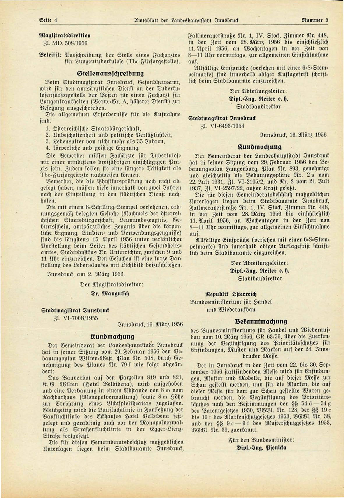 Unterlagen liegen beim Stadtbauamte Innsbruck,