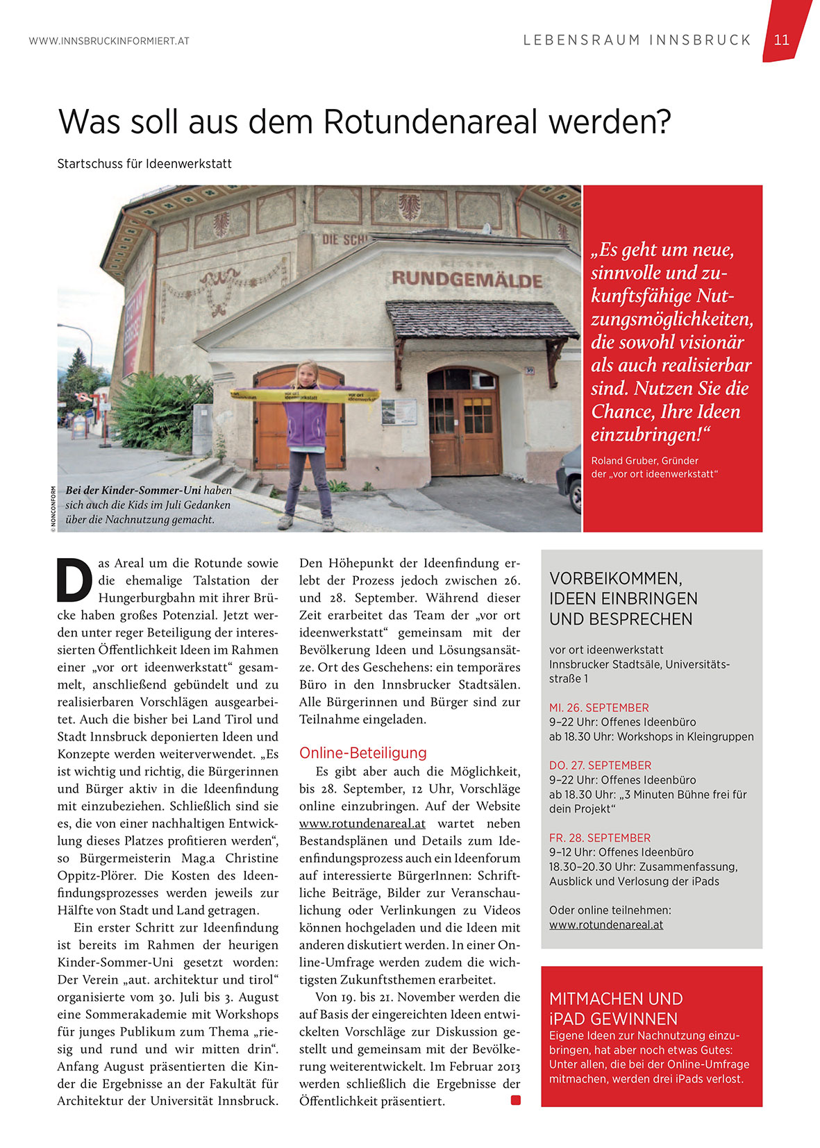 auf Basis der eingereichten Ideen entwickelten Vorschläge zur Diskussion gestellt und gemeinsam mit der Bevölkerung weiterentwickelt. Im Februar 2013