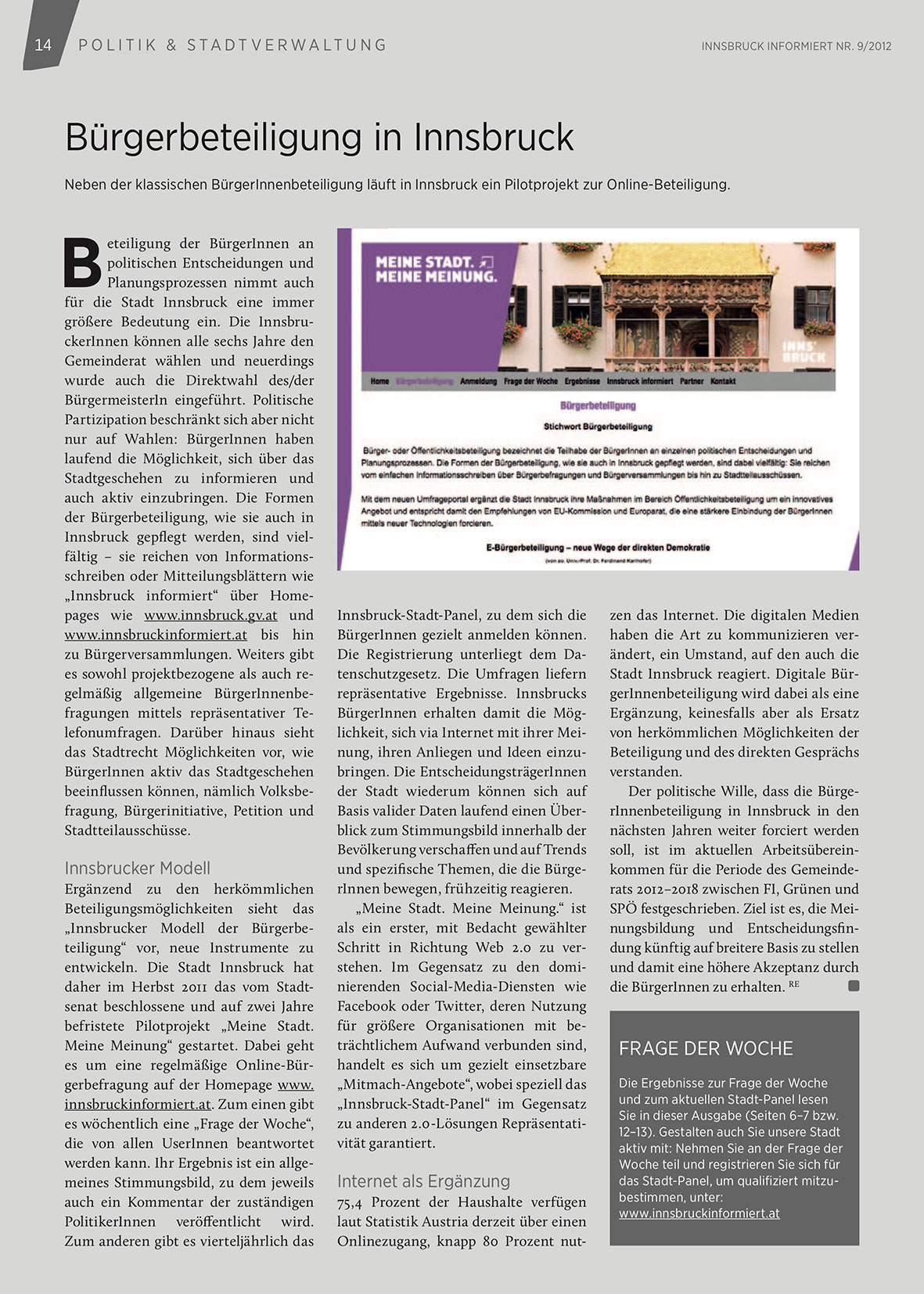 „Innsbruck informiert“ über Homepages wie www.innsbruck.gv.at und