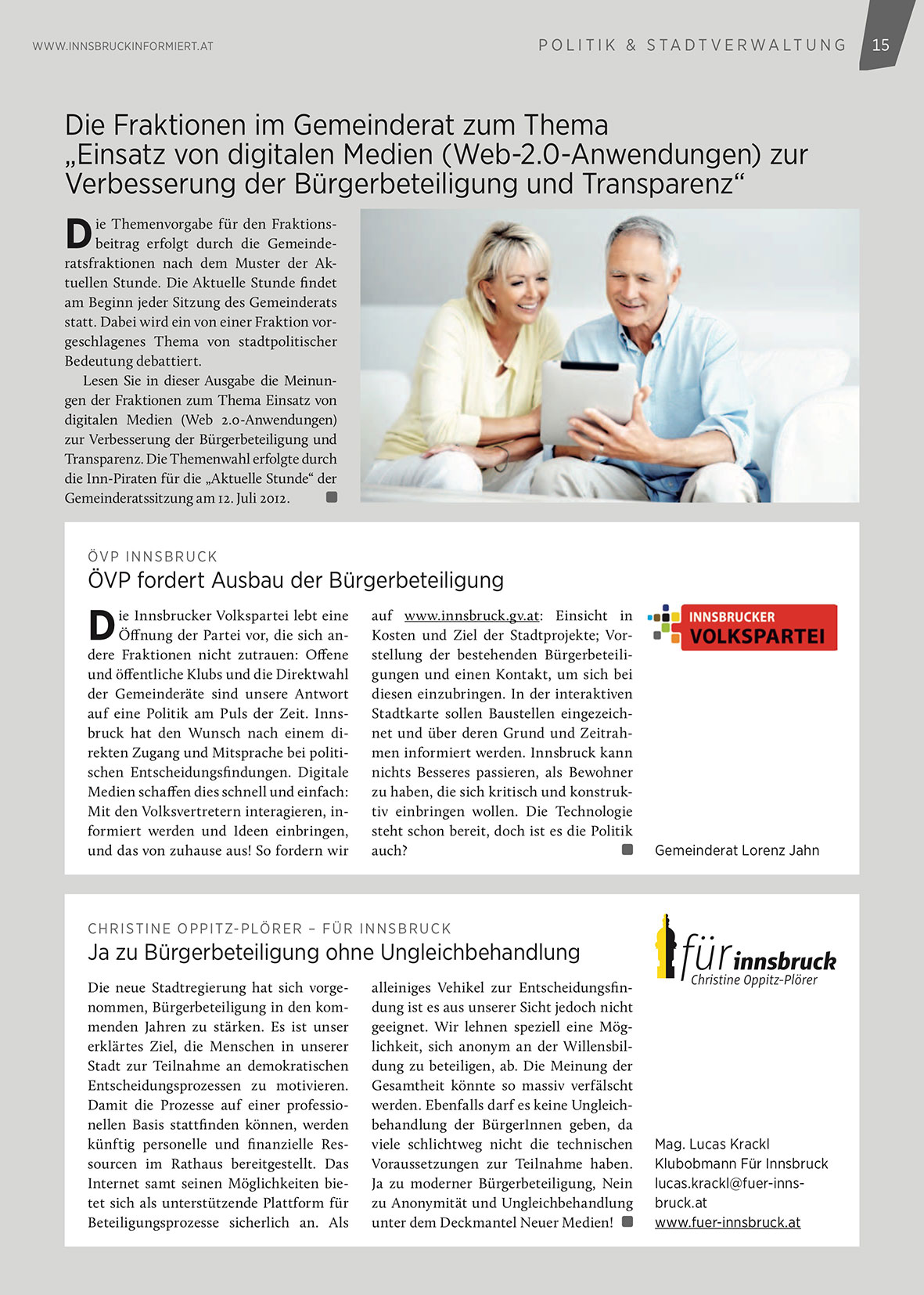 auf eine Politik am Puls der Zeit. Innsbruck hat den Wunsch nach einem direkten Zugang und Mitsprache bei politischen Entscheidungsfindungen. Digitale