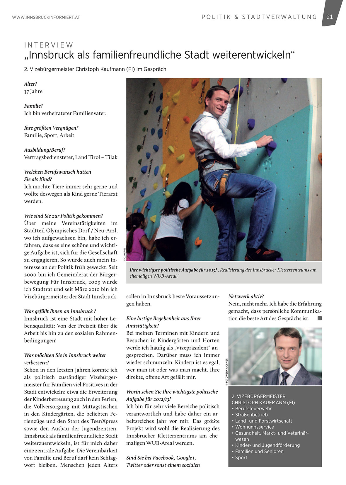 Ihre wichtigste politische Aufgabe für 2013? „Realisierung des Innsbrucker Kletterzentrums am