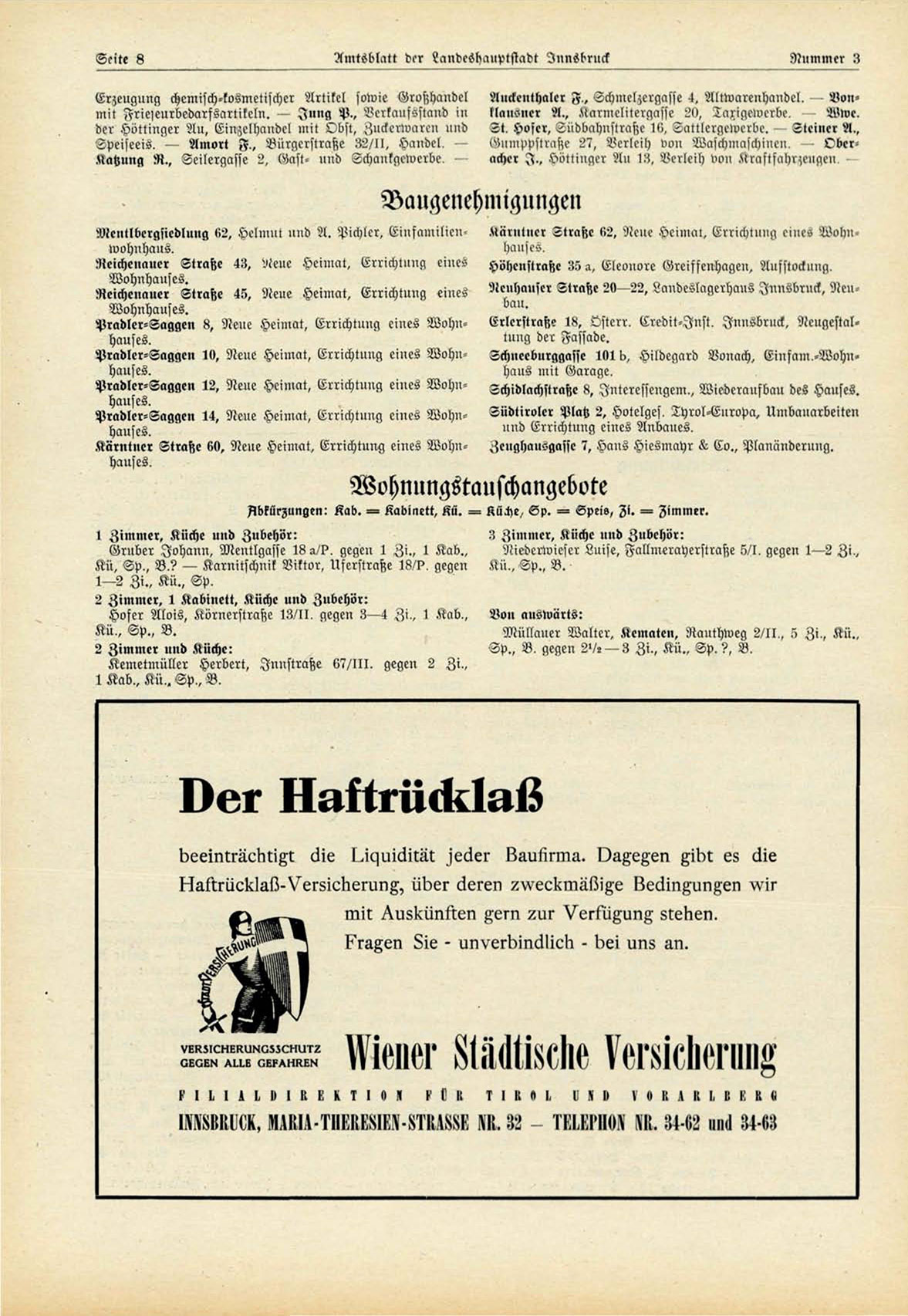 (^umppstraße 27, Verleih von Waschmaschinen. - Oberacher I . , Höttinger Au 18, Verleih von Kraftfahrzeugen,