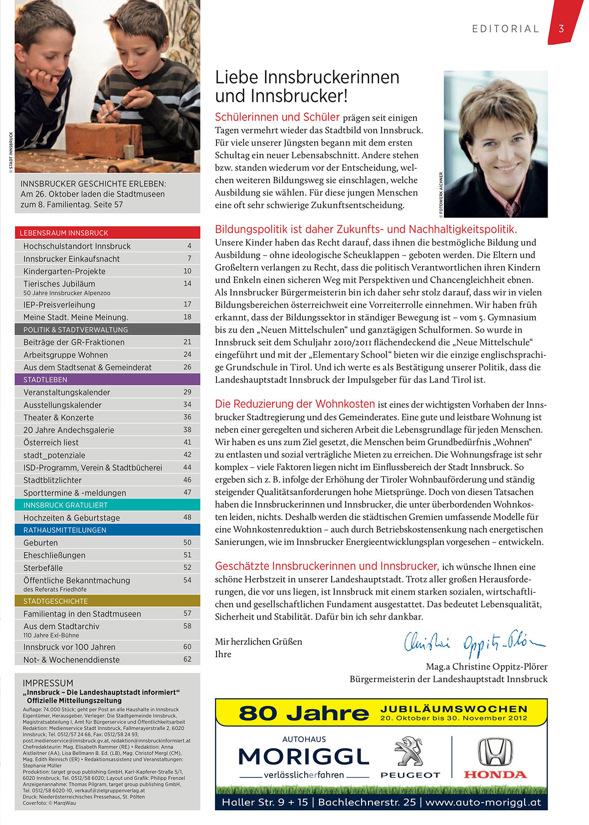 Auflage: 74.000 Stück; geht per Post an alle haushalte in Innsbruck