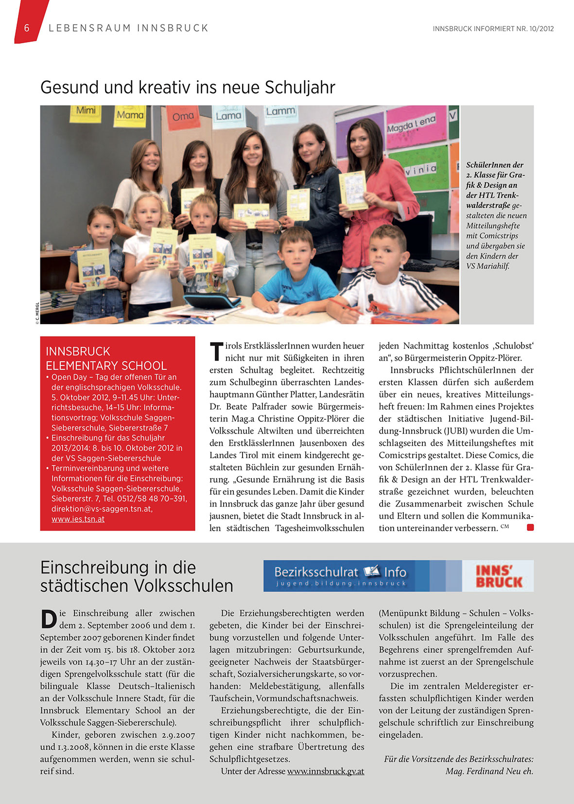 der städtischen Initiative Jugend-Bildung-Innsbruck (JUBI) wurden die Umschlagseiten des Mitteilungsheftes mit