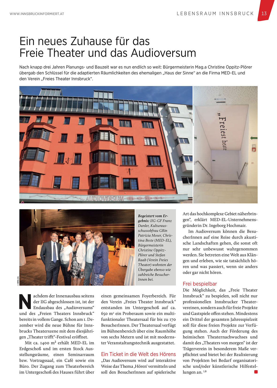bereits in vollem Gange. Schon am 1. Dezember wird die neue Bühne für Innsbrucks Theaterszene mit dem diesjährigen „Theater trifft“-Festival eröffnet.