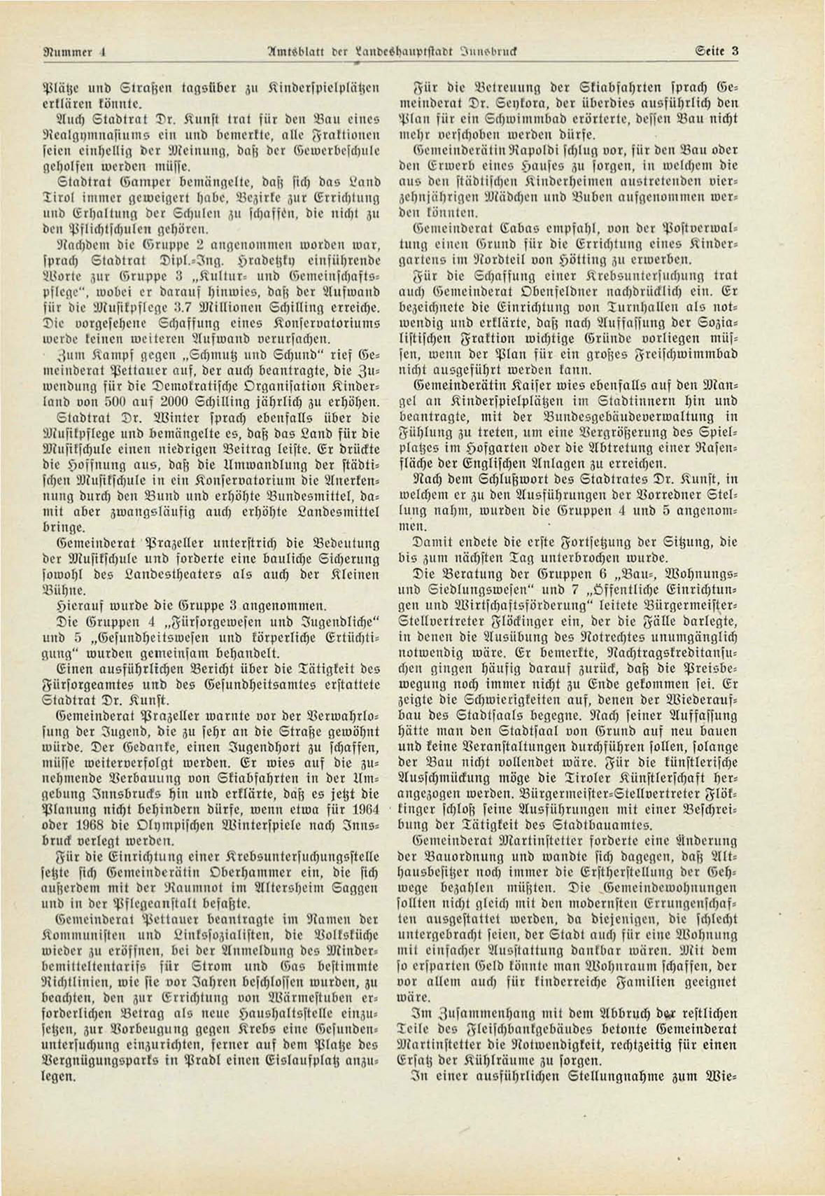 Ausschmückung möge die Tiroler Künstlerschaft herangezogen werden. Bürgermeister-Stellvertreter Flö"kkinger schloß seine Ausführungen mit einer Beschreibung der Tätigkeit des Stadtbauamtes.