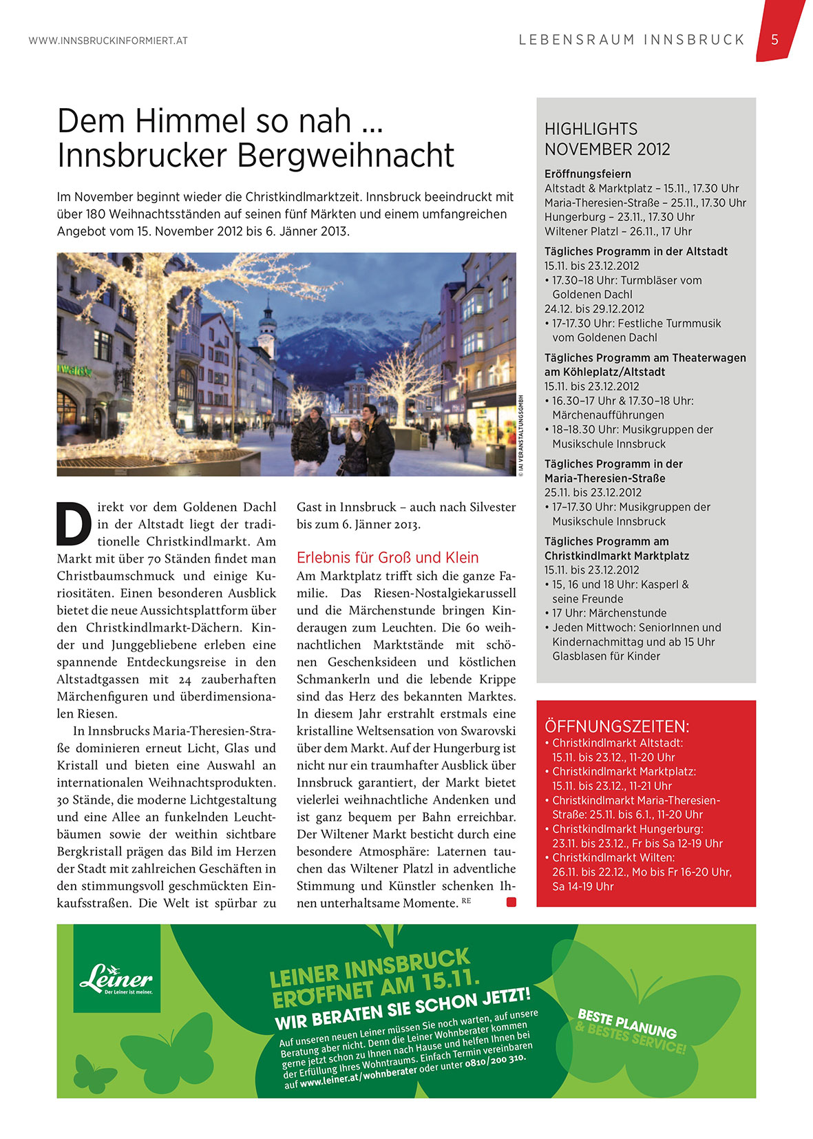 im november beginnt wieder die christkindlmarktzeit. innsbruck beeindruckt mit