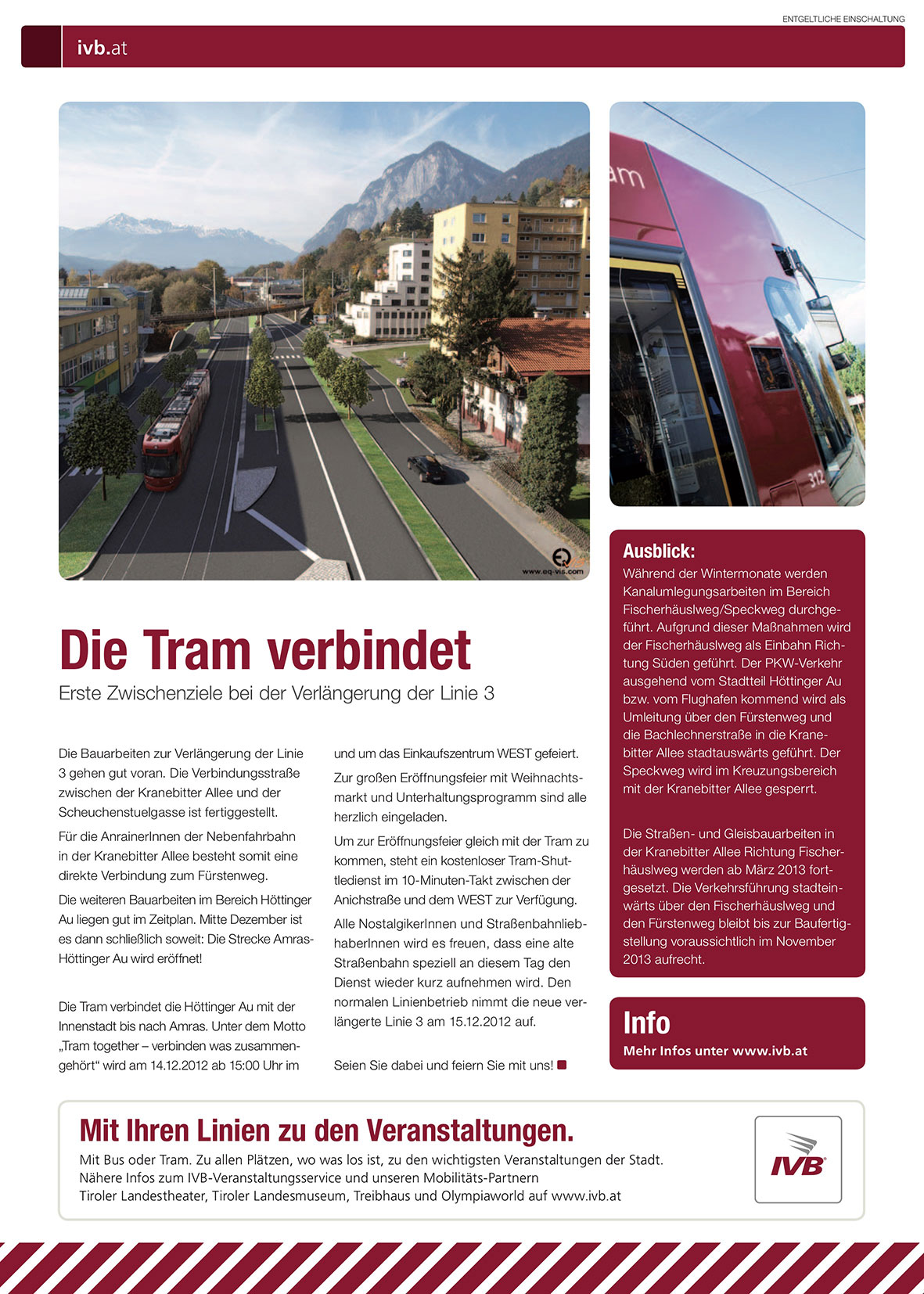 normalen Linienbetrieb nimmt die neue verlängerte Linie 3 am 15.12.2012 auf.