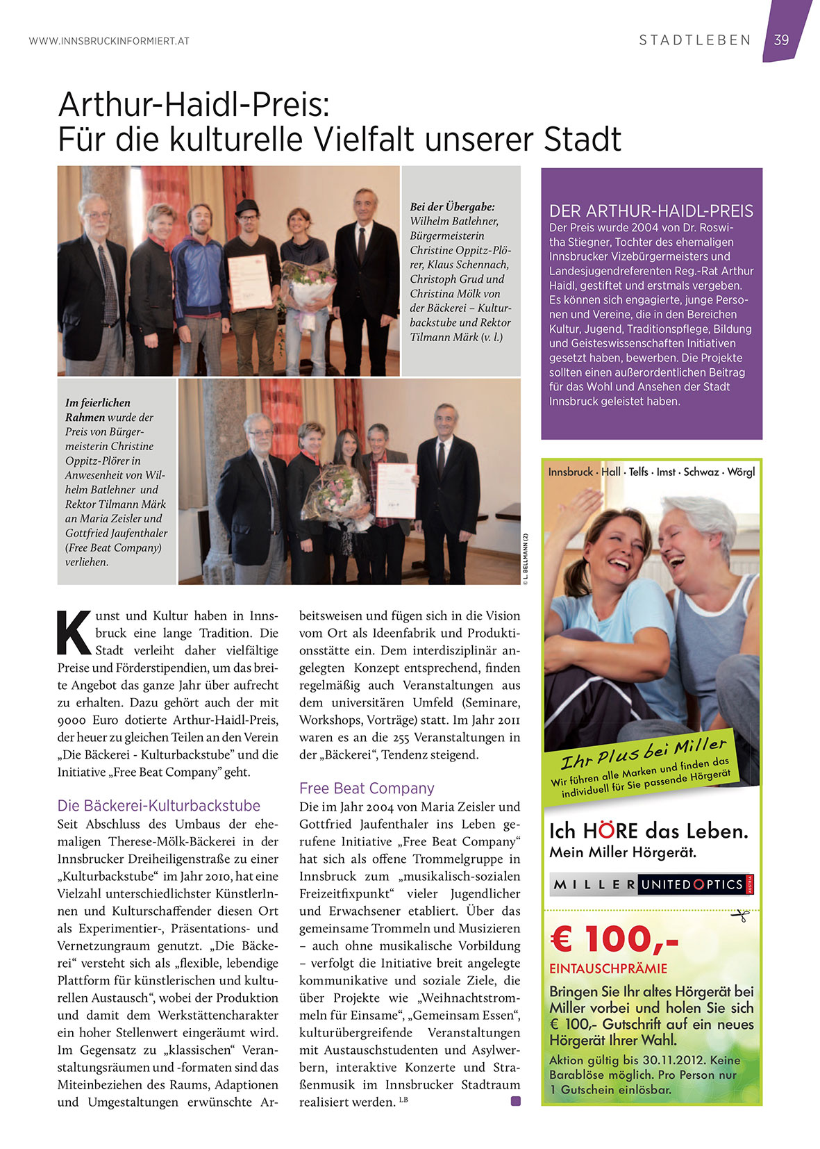 Gottfried Jaufenthaler ins Leben gerufene Initiative „Free Beat Company“