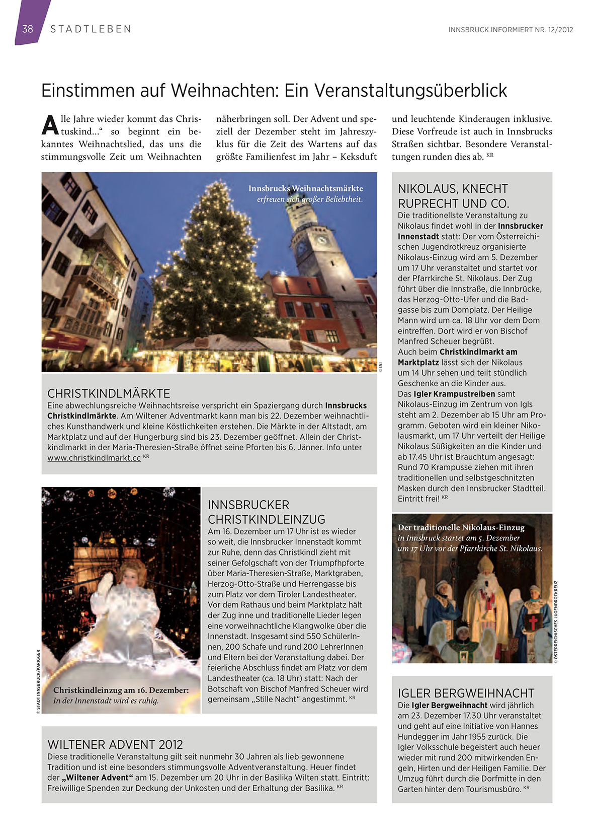 Eine abwechlungsreiche Weihnachtsreise verspricht ein Spaziergang durch Innsbrucks