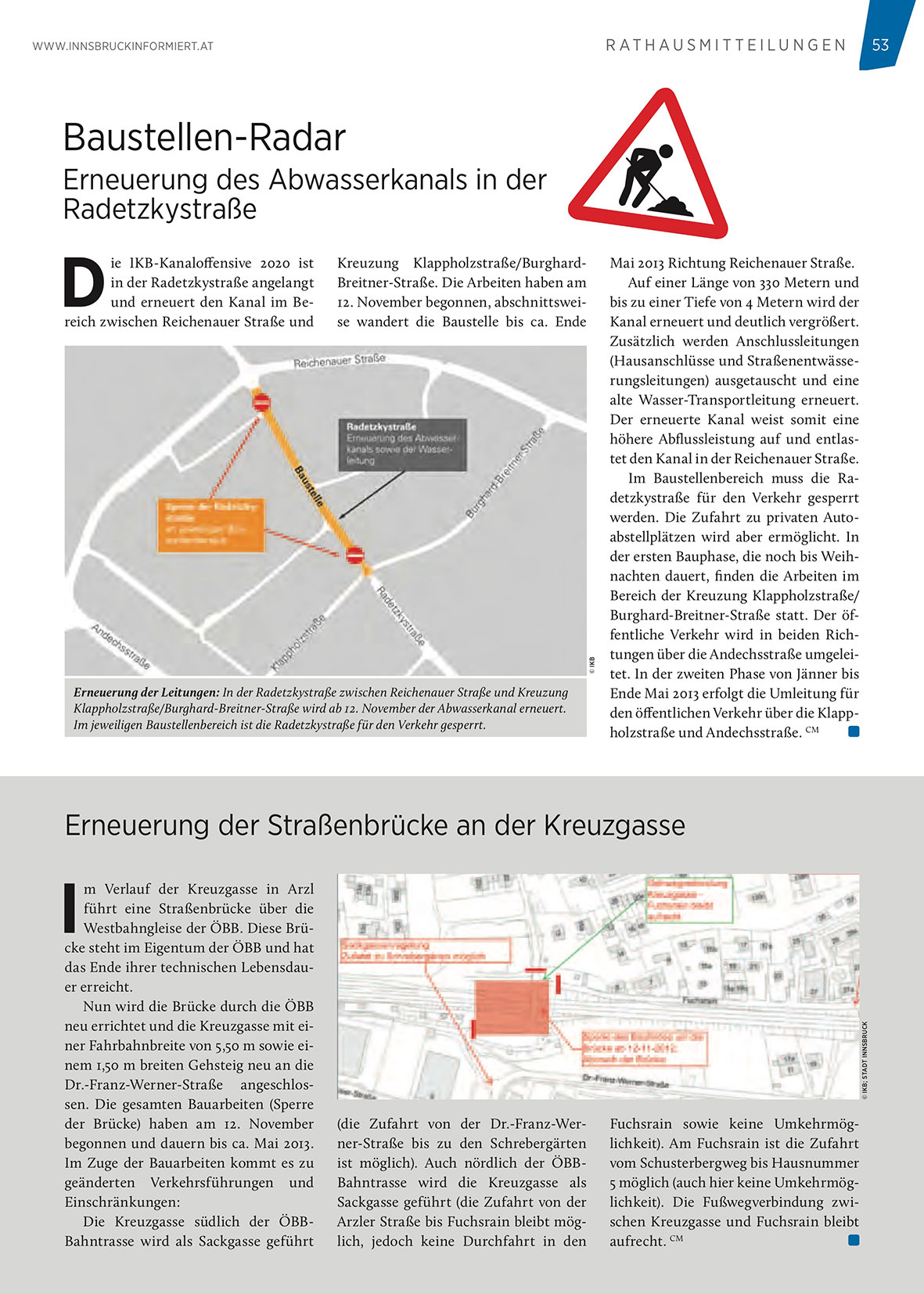 Im jeweiligen Baustellenbereich ist die Radetzkystraße für den Verkehr gesperrt.