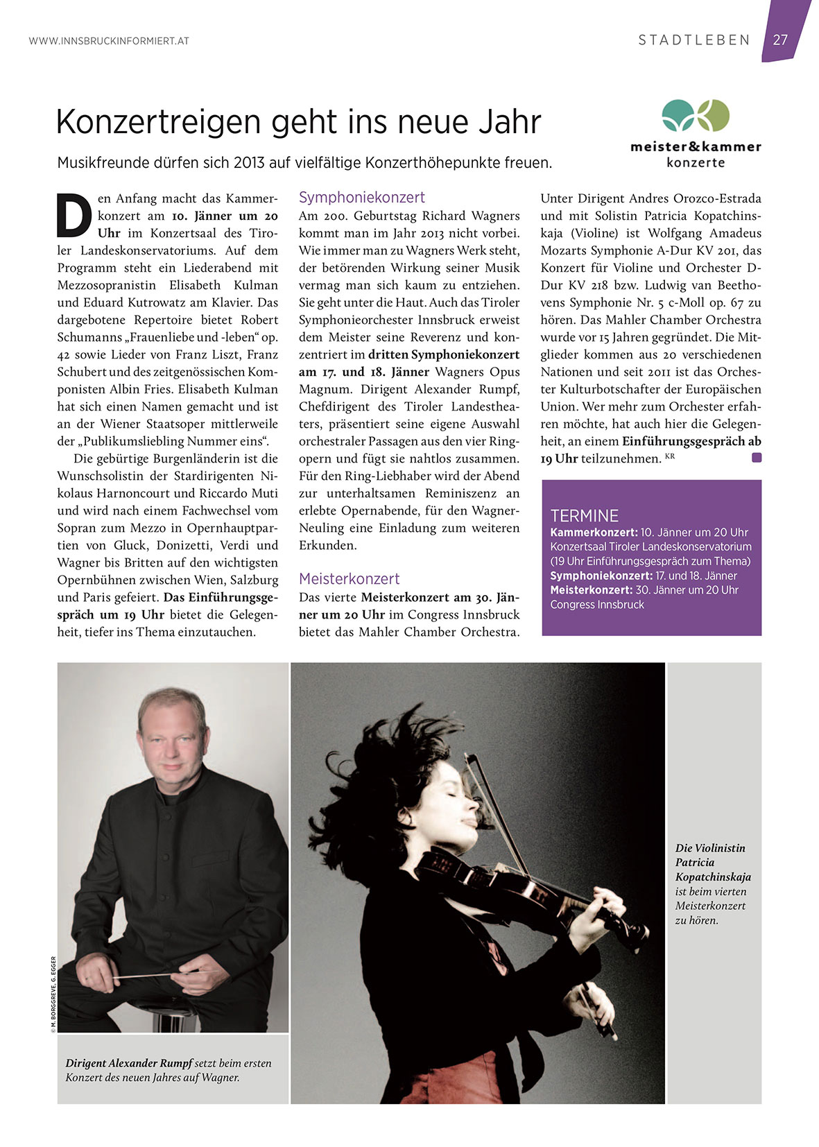Das vierte Meisterkonzert am 30. Jänner um 20 Uhr im Congress Innsbruck