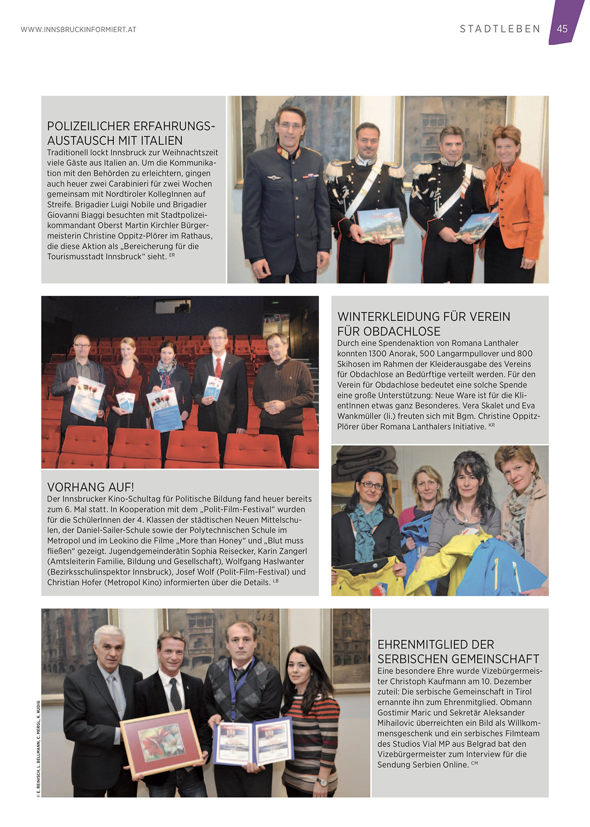 Giovanni Biaggi besuchten mit Stadtpolizeikommandant Oberst Martin Kirchler Bürgermeisterin Christine Oppitz-Plörer im Rathaus,