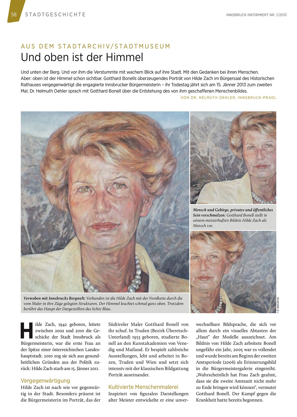 Aber: oben ist der Himmel schon sichtbar. Gotthard Bonells überzeugendes Porträt von Hilde Zach im Bürgersaal des Historischen