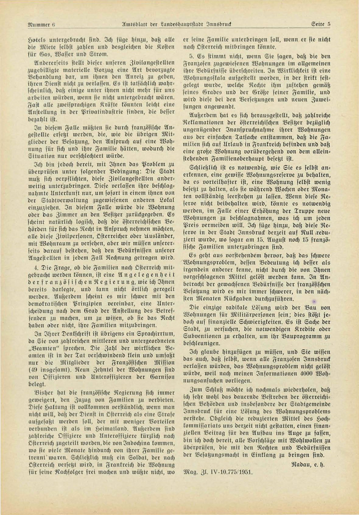 I l i diesem Halle müßten sie durch französische Angestellte ersetzt werden, die. wie die übrigen M i t glieder der Besatzung, den Anspruch auf eine Wohnunc/l für sich und ihre Familie hätten, wodurch die