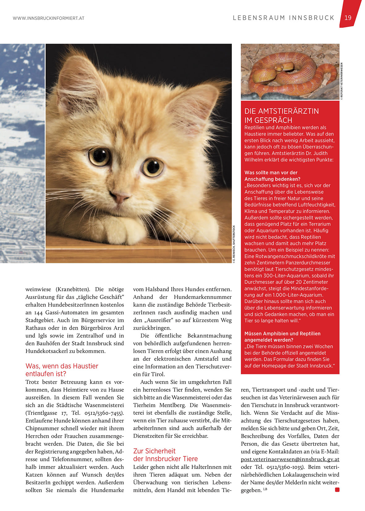 den Tierschutz in Innsbruck verantwortlich. Wenn Sie Verdacht auf die Missachtung des Tierschutzgesetzes haben,