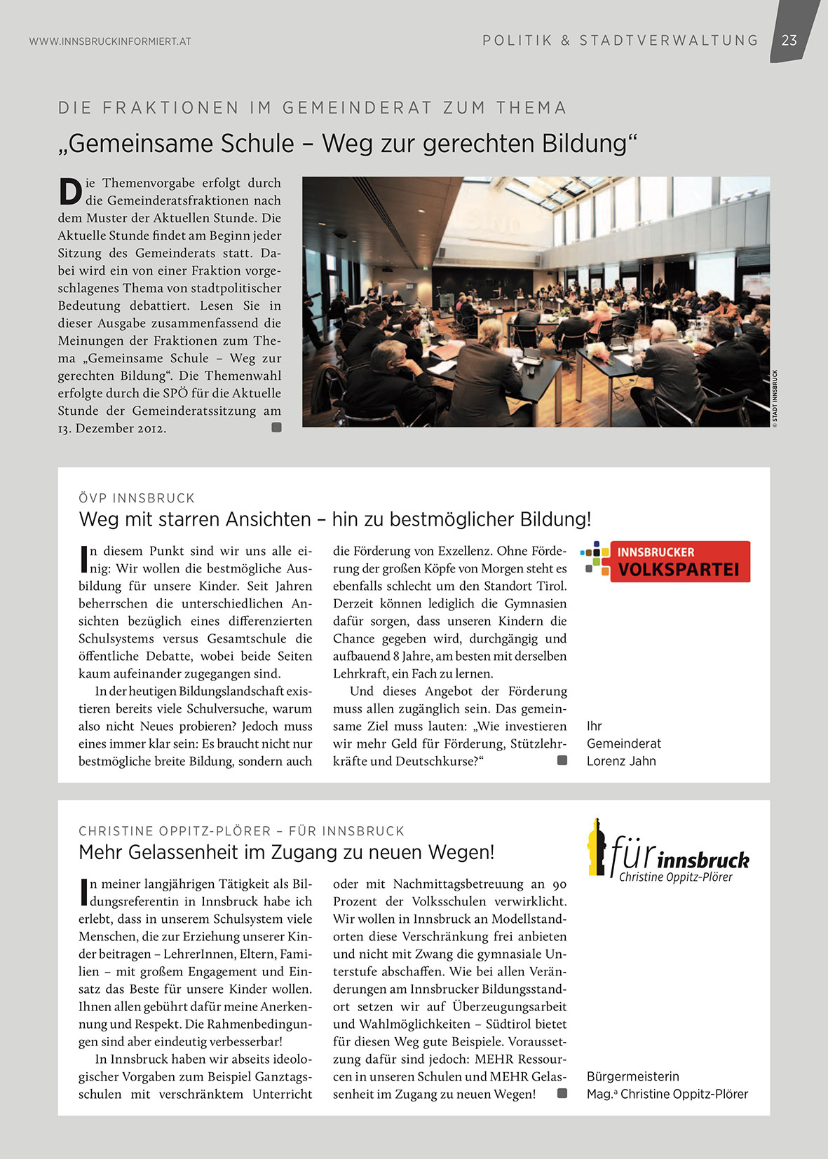 und nicht mit Zwang die gymnasiale Unterstufe abschaffen. Wie bei allen Veränderungen am Innsbrucker Bildungsstandort setzen wir auf Überzeugungsarbeit