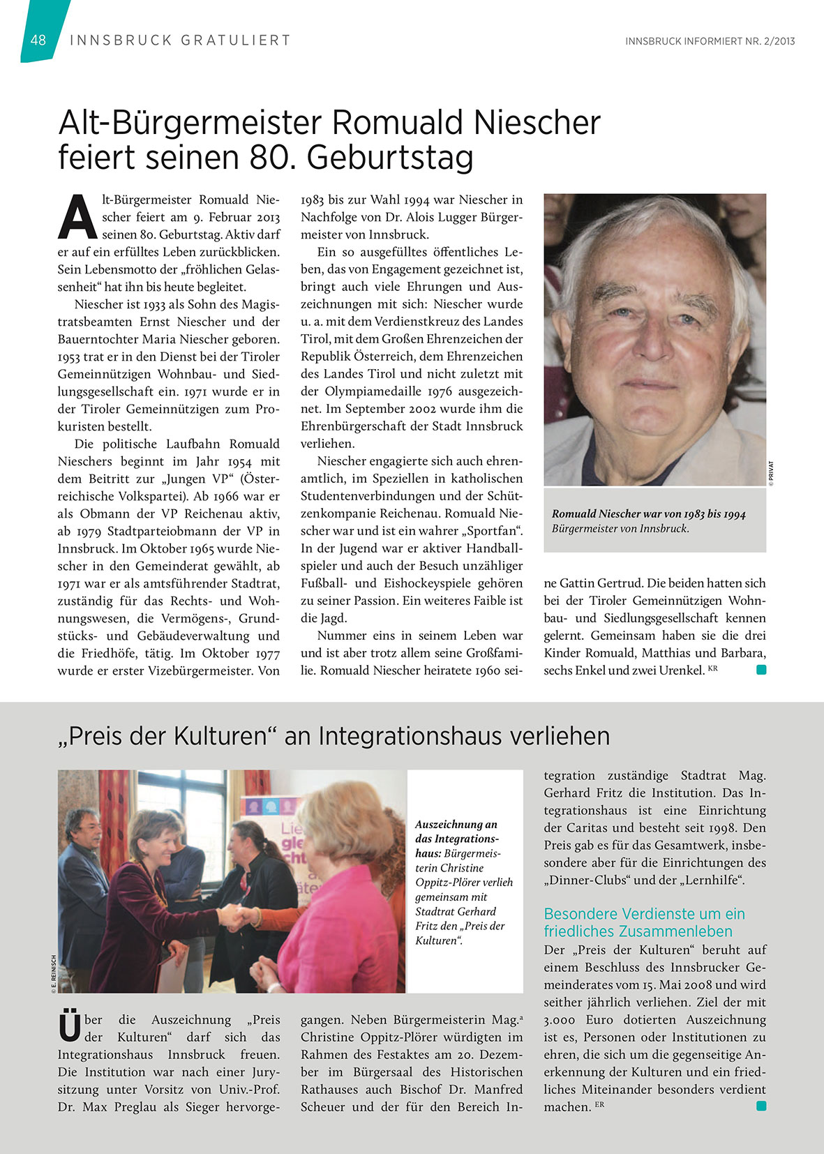 Innsbruck. Im Oktober 1965 wurde Niescher in den Gemeinderat gewählt, ab