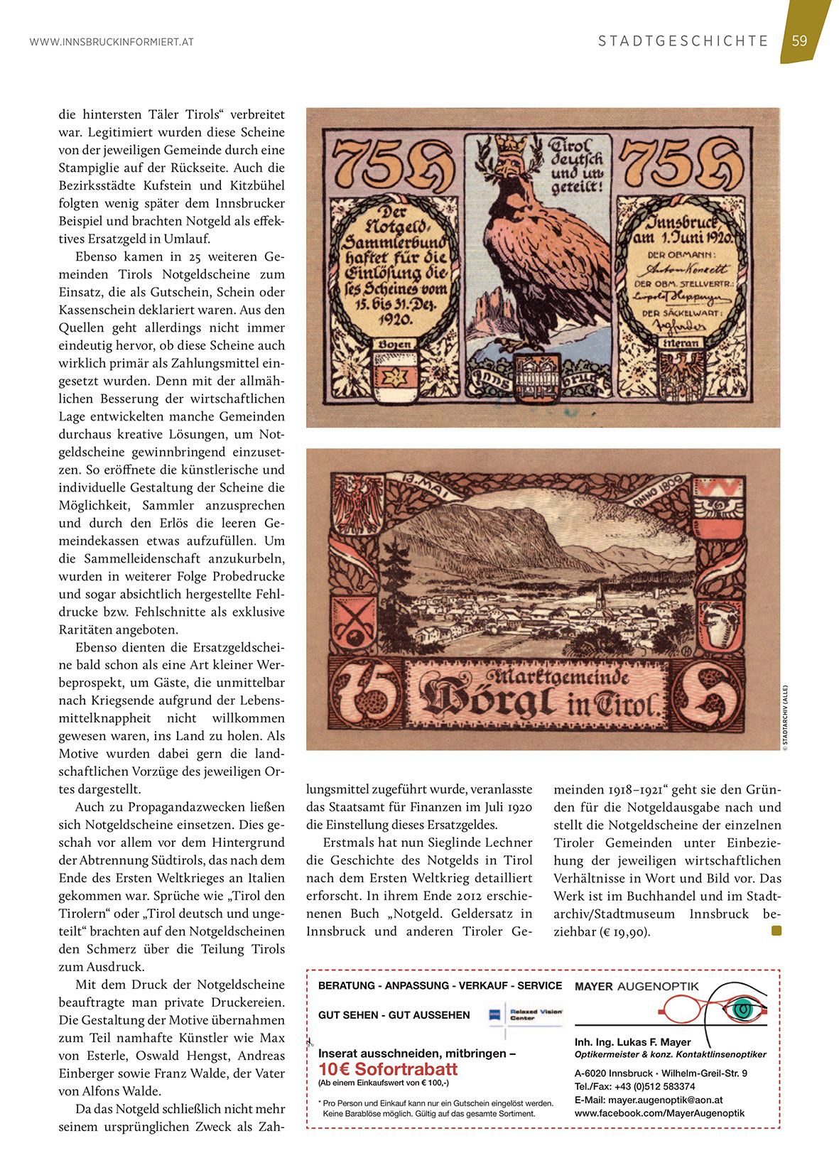 Ebenso kamen in 25 weiteren Gemeinden Tirols Notgeldscheine zum