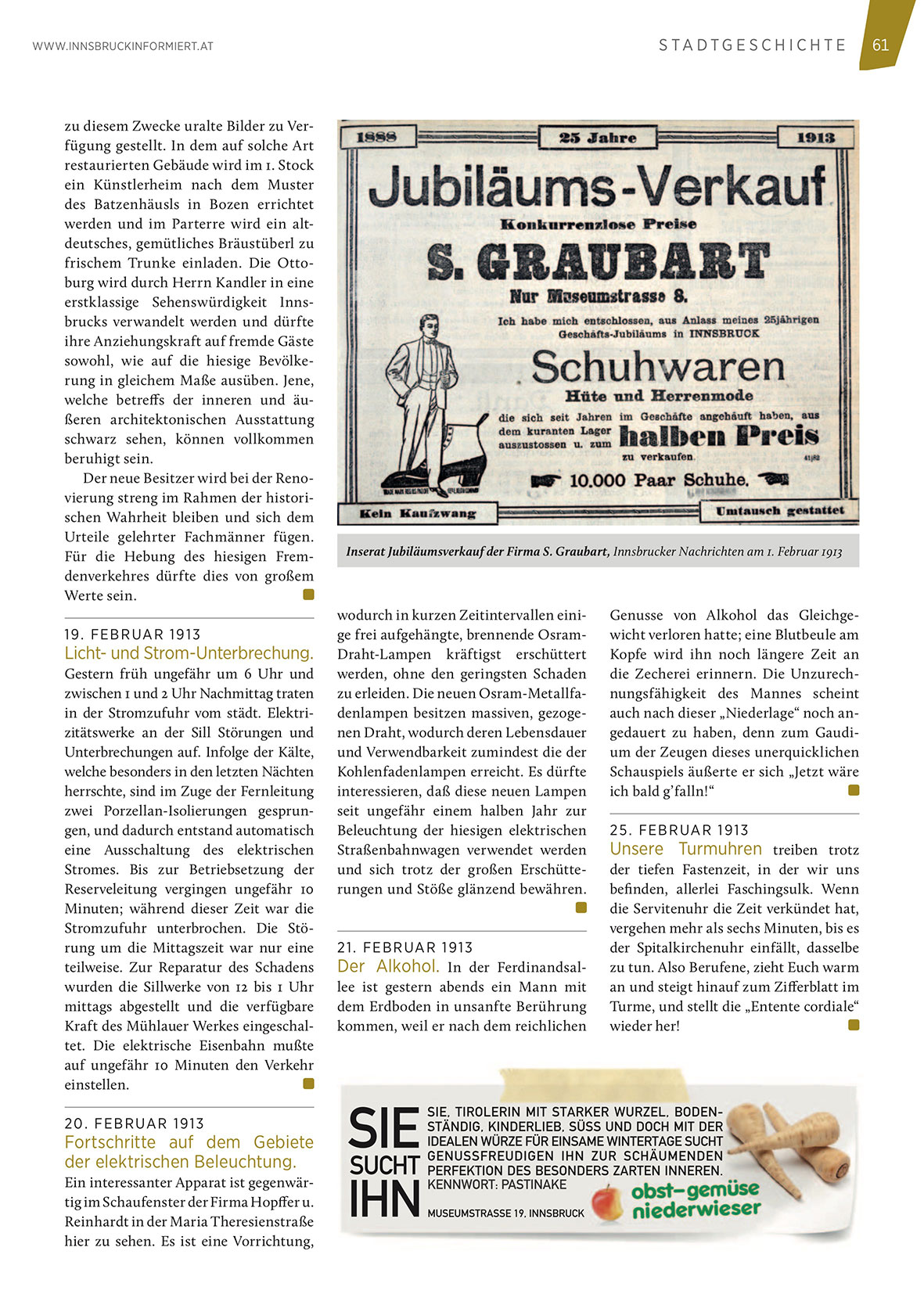 Inserat Jubiläumsverkauf der Firma S. Graubart, Innsbrucker Nachrichten am 1. Februar 1913