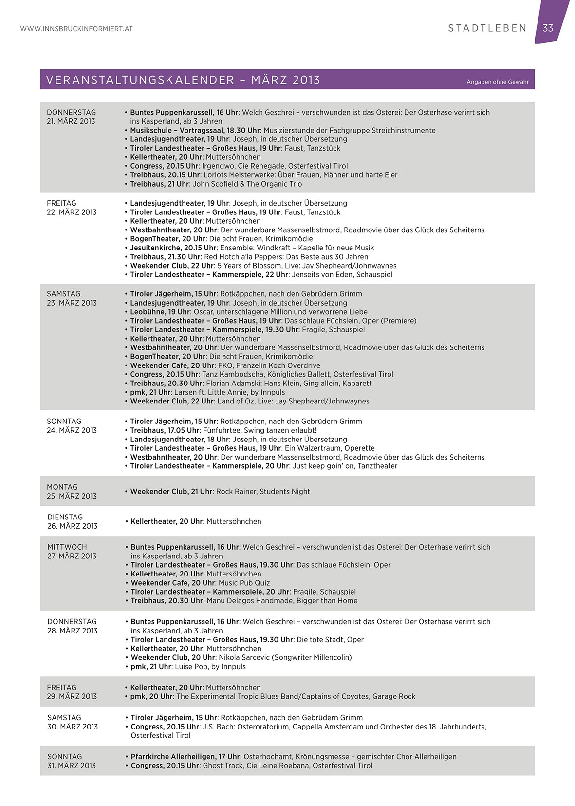 • Pfarrkirche Allerheiligen, 17 Uhr: Osterhochamt, Krönungsmesse – gemischter Chor Allerheiligen