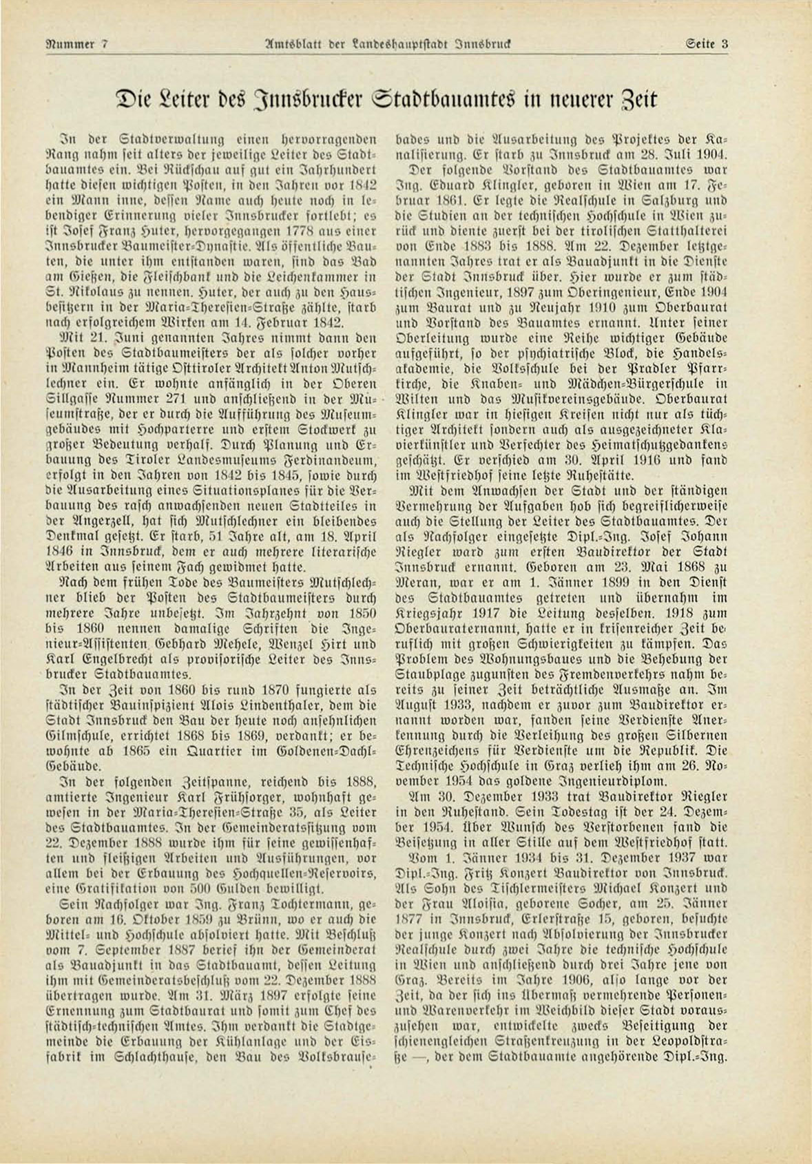 Die Leiter des Innsbrncker Htadtbmmmtes in neuerer Zeit